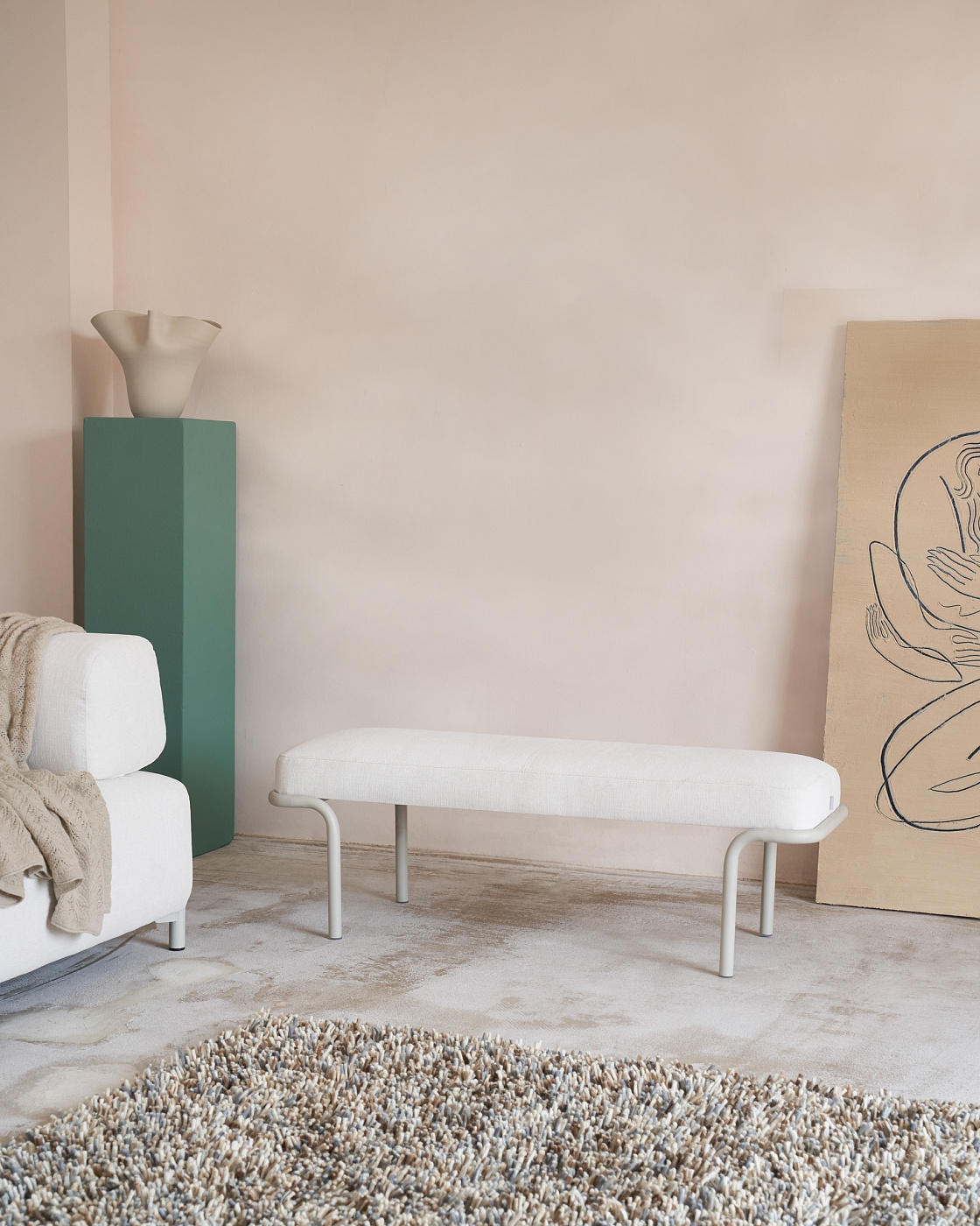 Банкетка Compo из бежевой синели, серые металлические ножки, 130 см