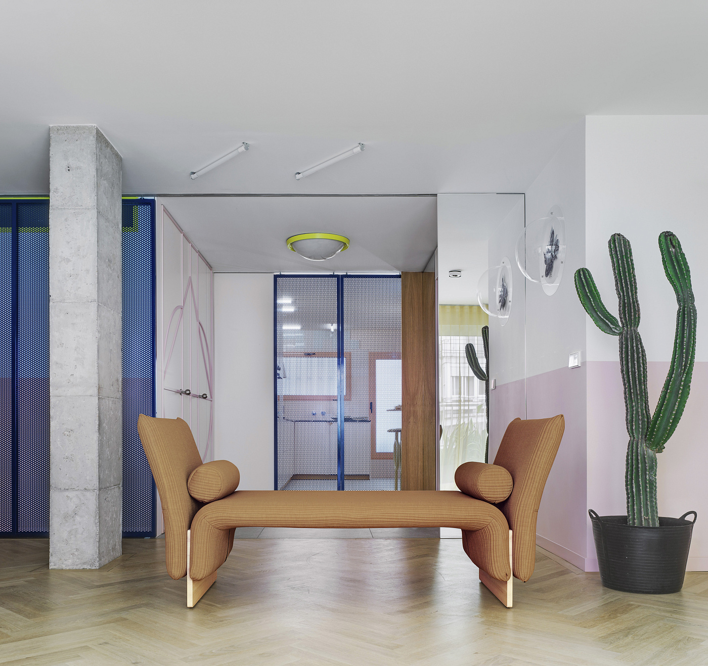 Этимологический корень слова диван прошел долгий путь от Индии до Персии, через Османскую империю и по всему Магрибу: диван был “посольской комнатой”, где члены королевской семьи принимали иностранных сановников. В знак признательности эти гости были угощены всевозможными предметами роскоши, одним из которых было удобно расположиться для переговоров. Поэтому в Европе слово диван означает длинное мягкое сиденье, обычно без спинки, на которую можно лечь. Арабское наследие Валенсии вдохновило Перезочандо на создание современного дивана. Ассортимент включает в себя шезлонг, а также модульные скамейки и оригинальное кресло. Клаудия и Педро уменьшили извилистые изгибы сидений и спинок до минимума, придавая дизайну легкость. Формальная простота ножек обеспечивает легкий оттенок отличия. Выпускаемые из натурального или окрашенного дерева, они могут сочетаться или контрастировать с обивкой мебели.