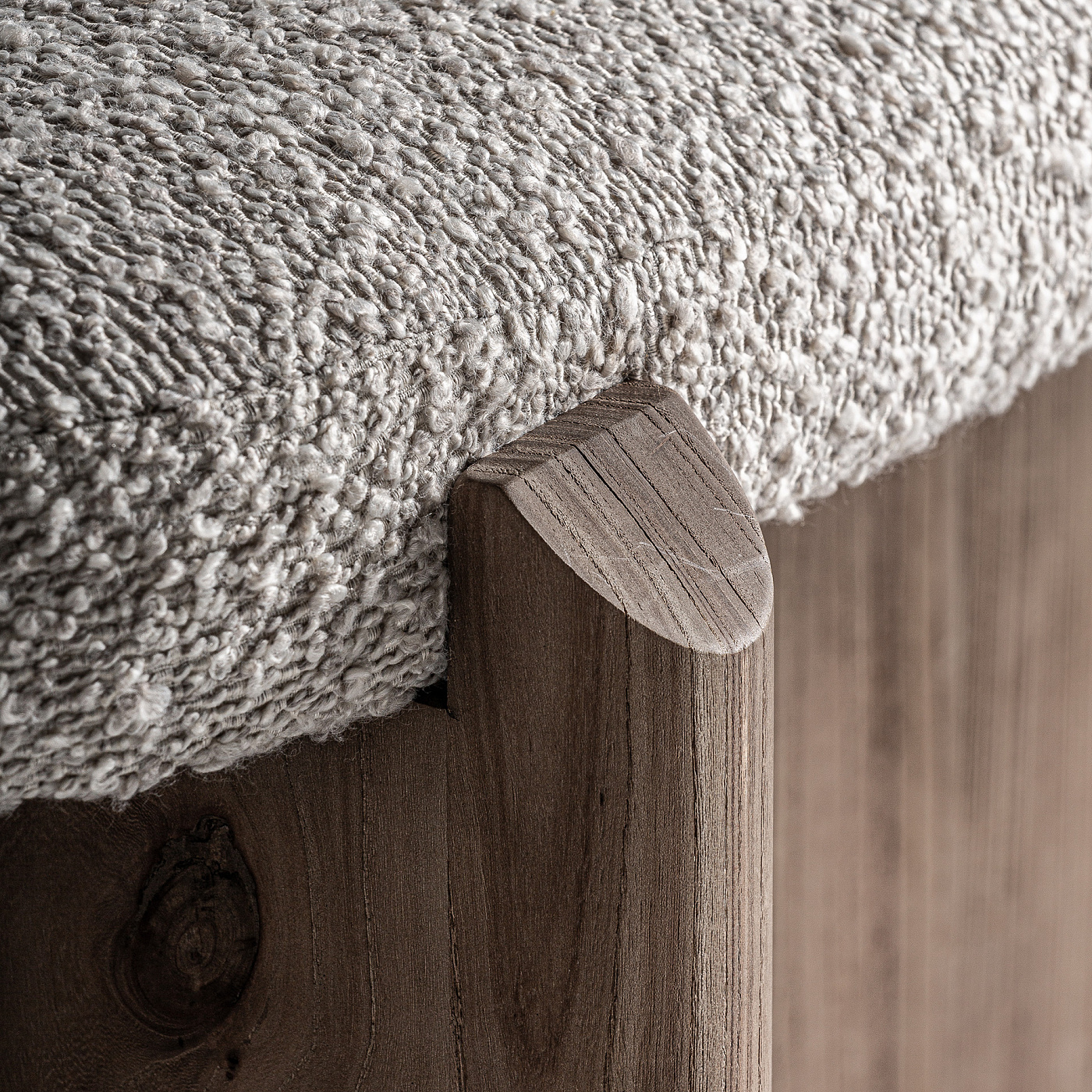 Современная банкетка Изготовлена из коричневого дуба в сочетании с бежевым полиэстером.