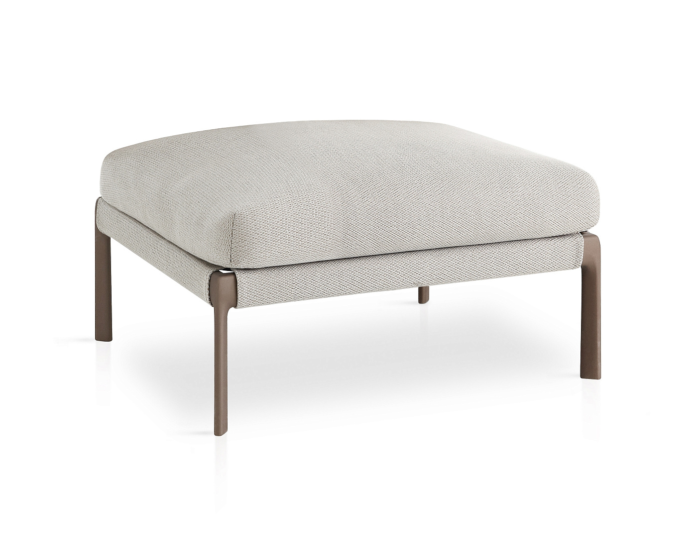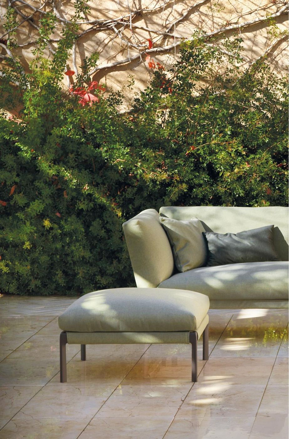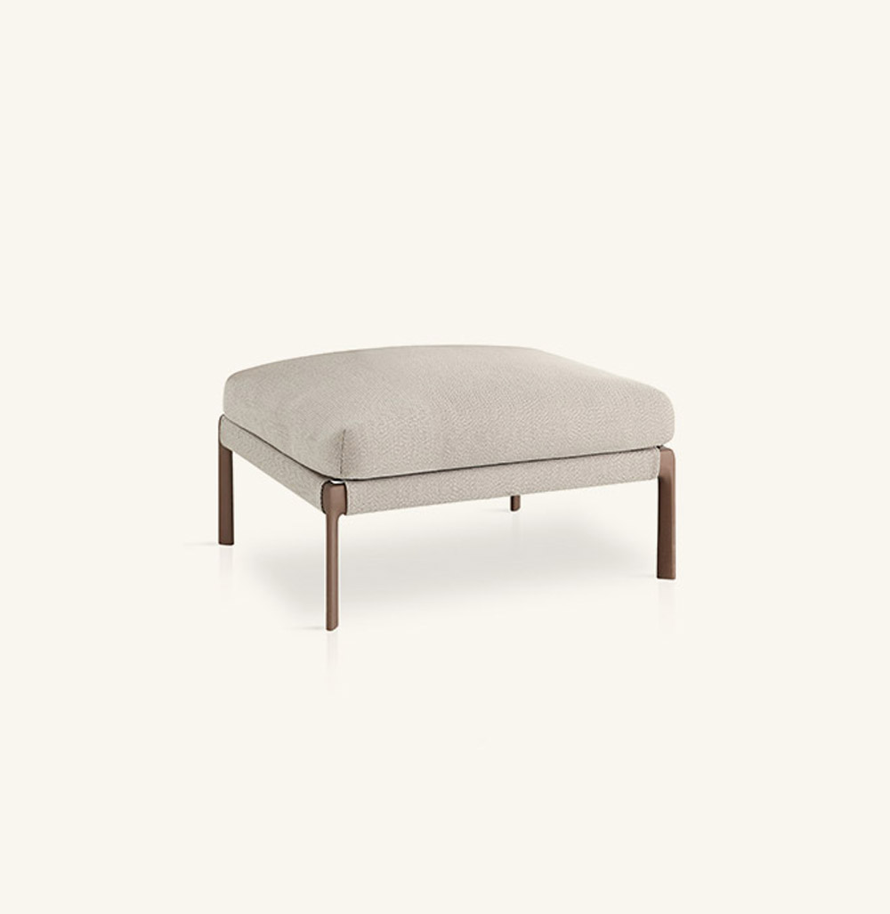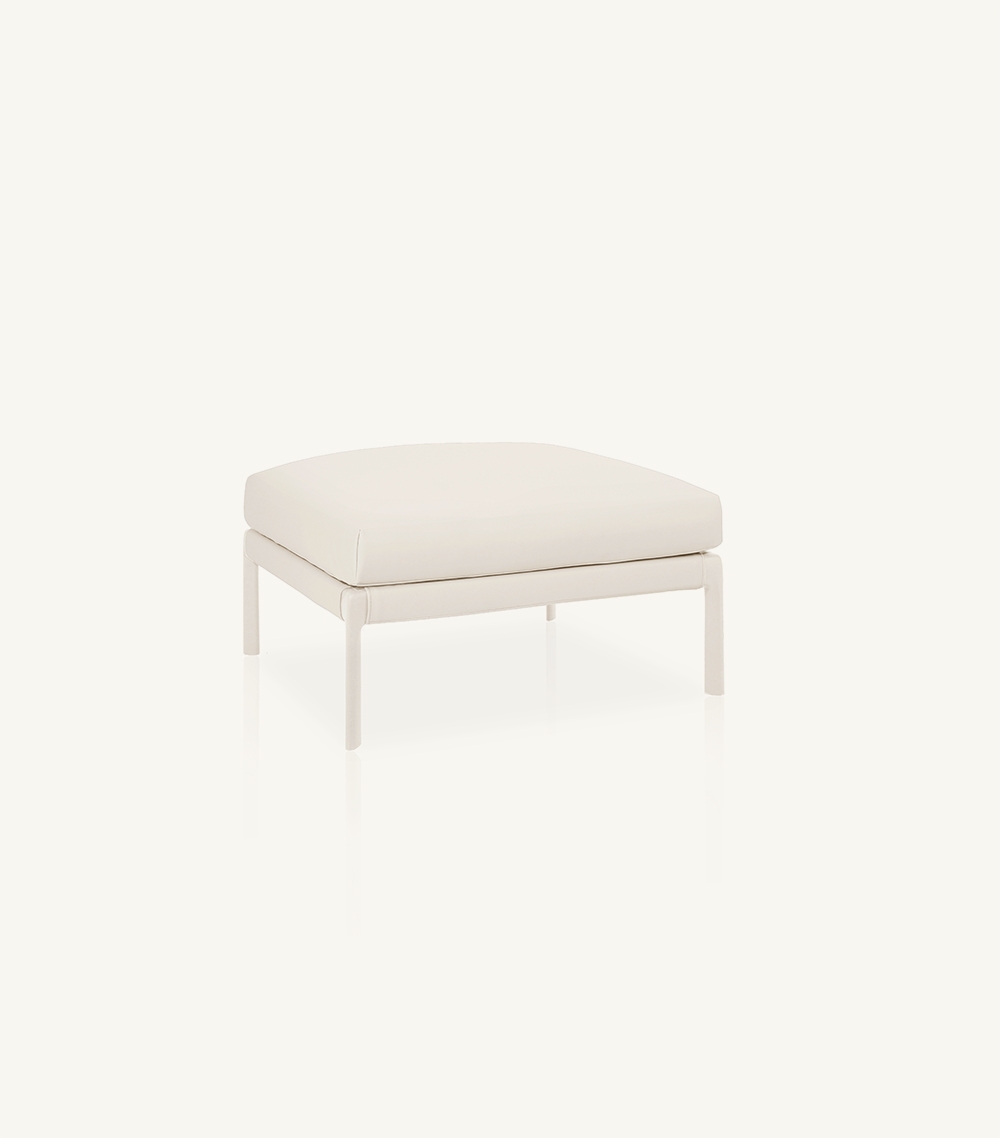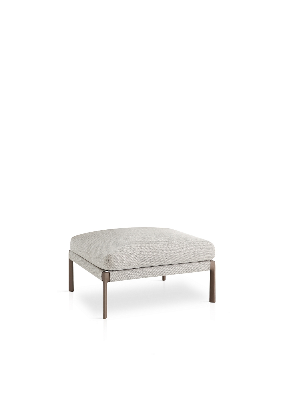 Подставка для ног со структурой из высокопрочного алюминиевого профиля и ножками из литого алюминия, покрытого полиэфирным порошком. Возможность персонализации благодаря широкому выбору технических тканей, полностью подходящих для использования на открытом воздухе. Съемный мягкий чехол.