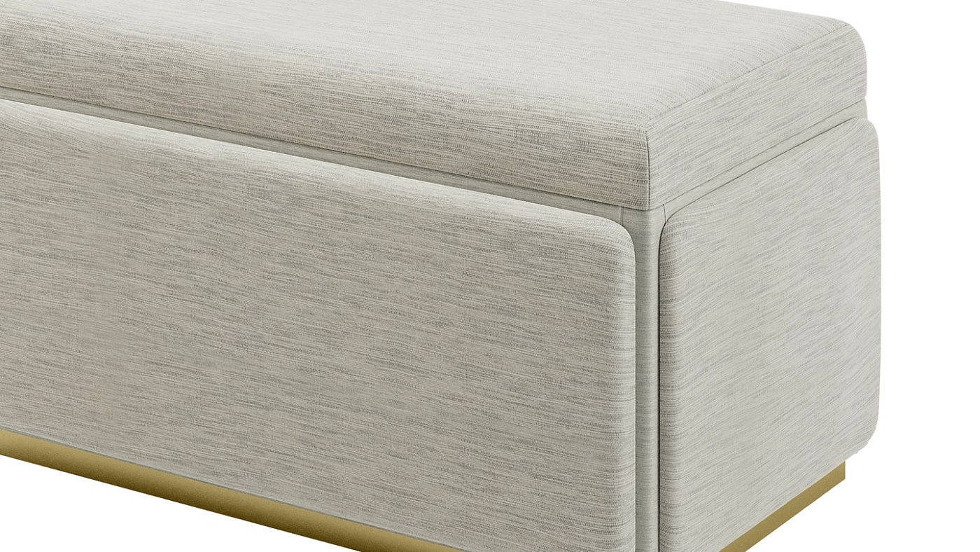 Прямоугольная скамья WINDSOR с мягкой обивкой во всех нужных местах установлена на металлическом основании, которое прекрасно контрастирует с гладкой обивкой. Панели, обтянутые тканью со всех четырех сторон, придают законченному дизайну мягкость и многомерность.