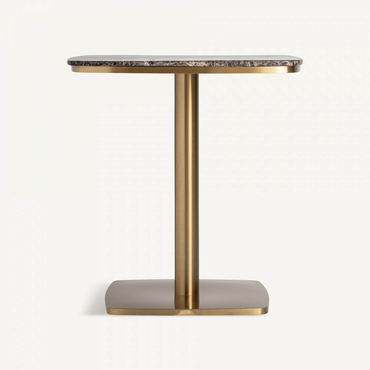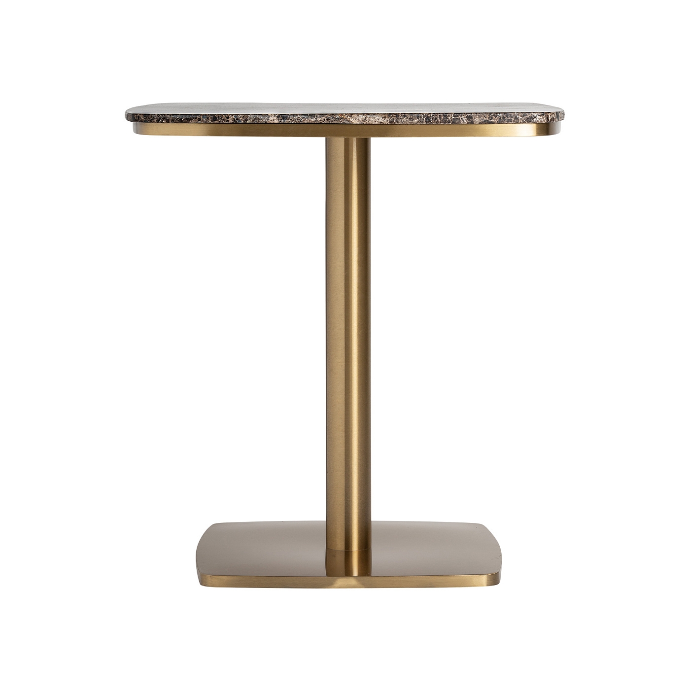 Барный стол. Изготовлен из мрамора в сочетании с нержавеющей сталью. Ширина: 70 см, Глубина: 70 см, Высота: 77 см