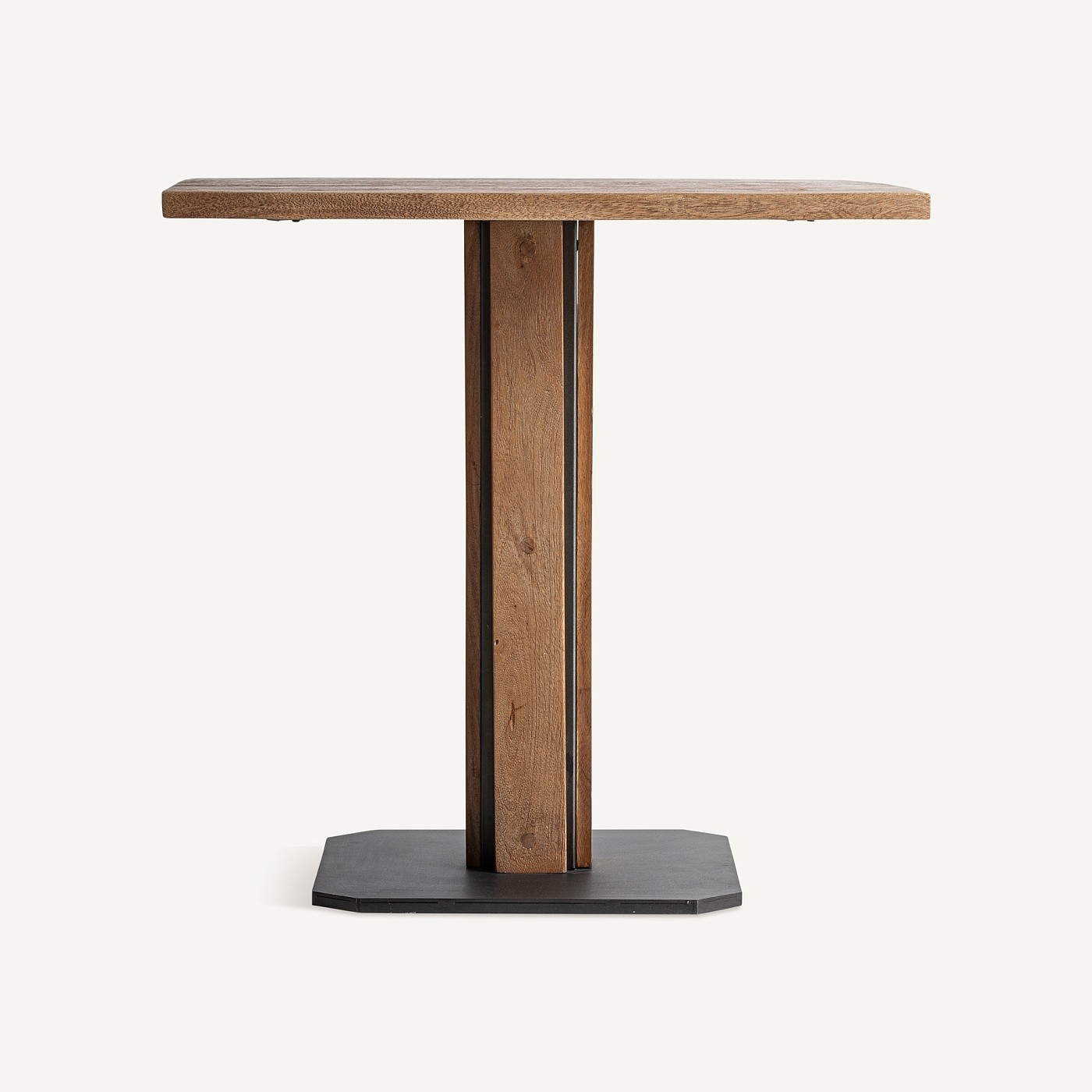 Барный стол. Изготовлен из древесины акации в сочетании с железом.