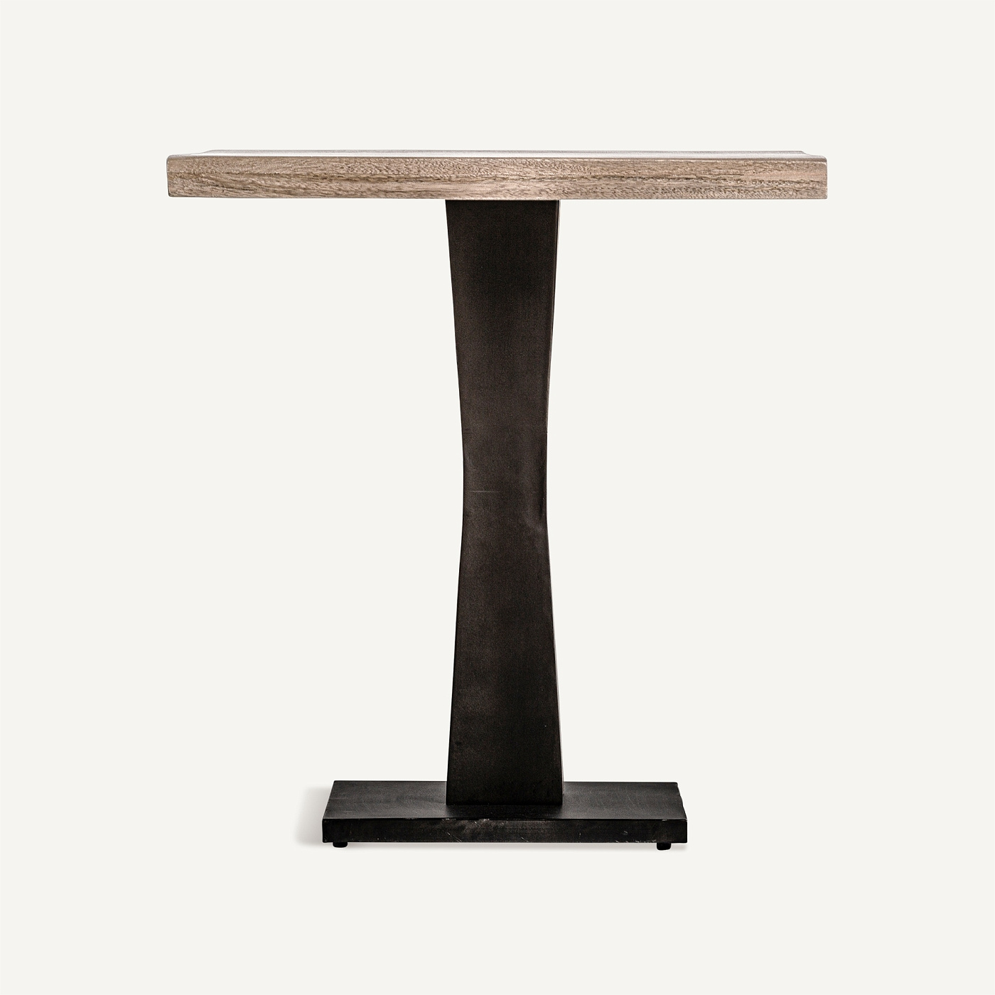 Стеклянный барный стол, цвет черный/натуральный, индустриальный стиль. Изготовлен из дерева манго в сочетании с железом. Съемное изделие. Ширина: 70 см, Глубина: 70 см, Высота: 75 см