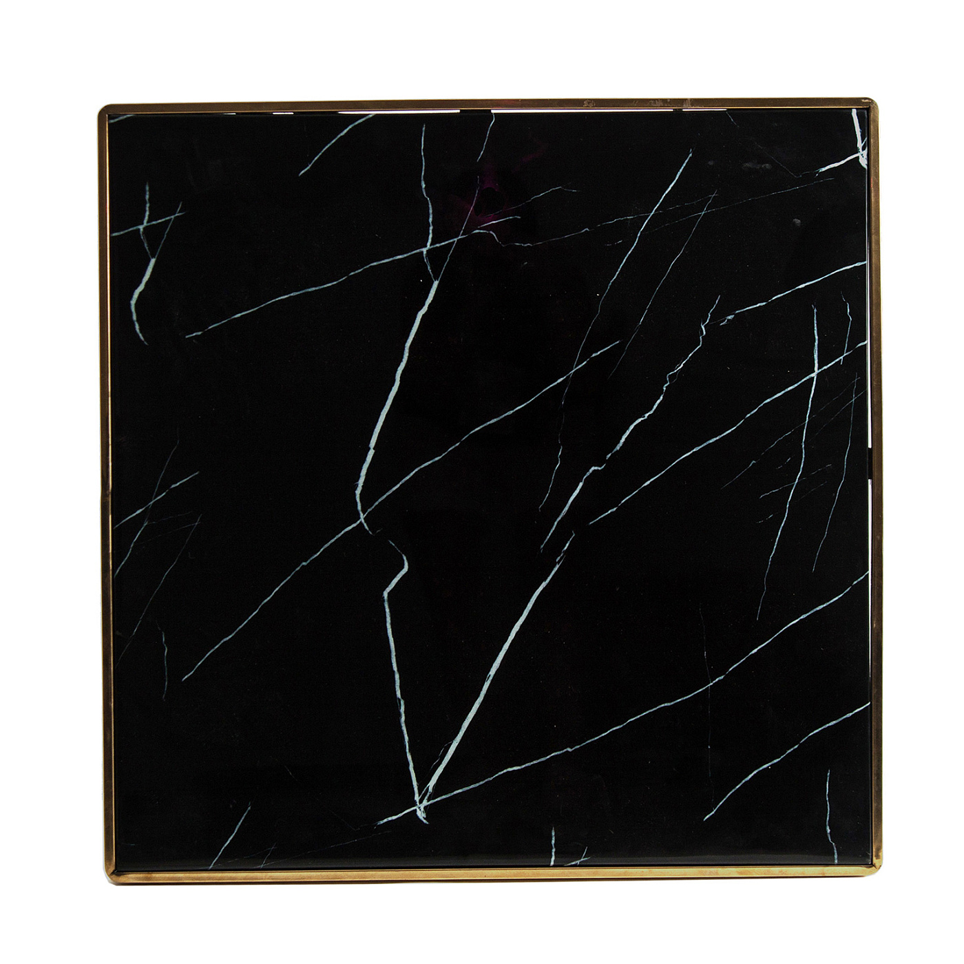Барный стол квадратной формы, черного цвета, стиль арт-деко, в сочетании с железом и сталью. Съемное изделие. Ширина: 70 см, Глубина: 70 см, Высота: 107 см.