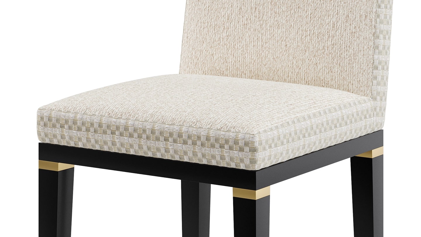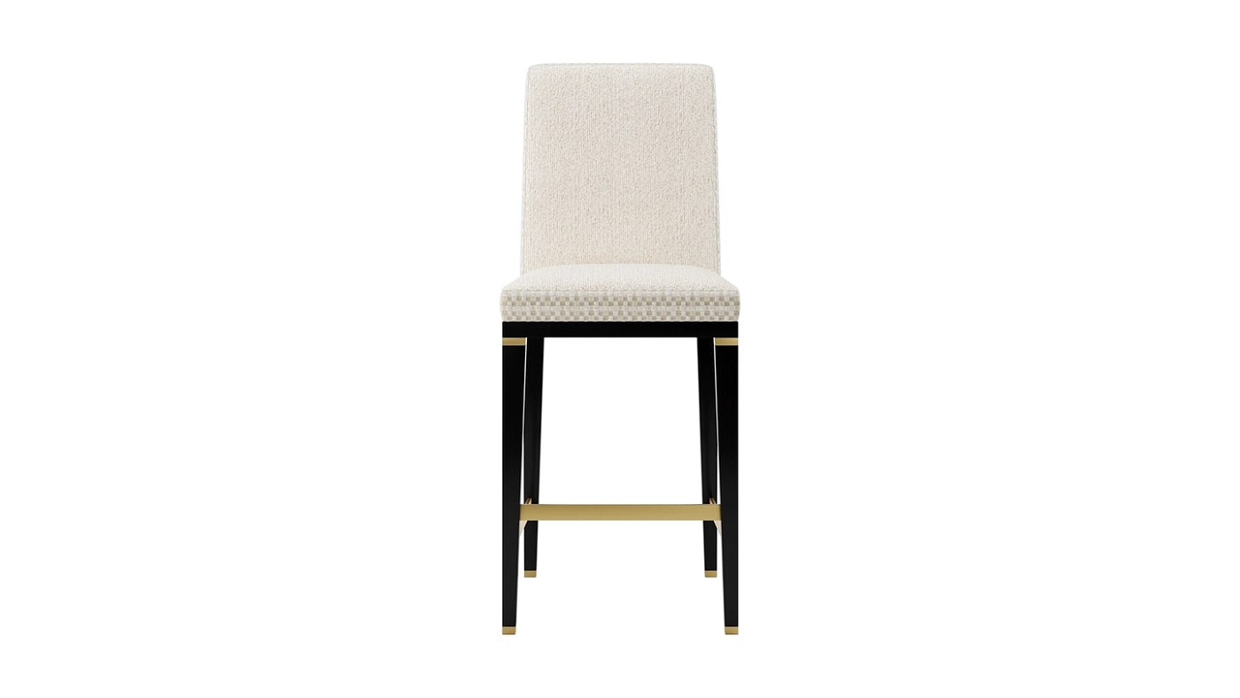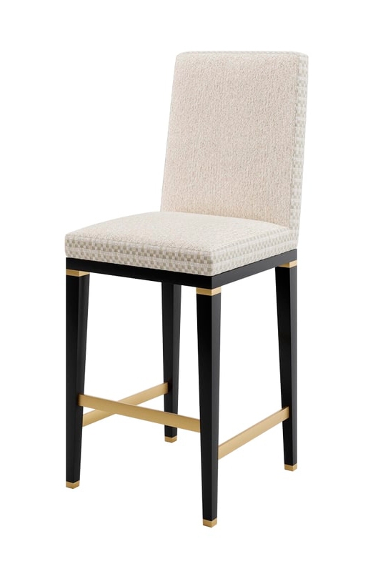 Барный стул AZURE создает желанную атмосферу ар-деко благодаря тщательно подобранной палитре. В обивке роскошный бархат сочетается с модным твидом, в то время как ножки и каркас сочетают блестящую матовую латунь с глянцевым черным лаком, создавая драматический эффект.