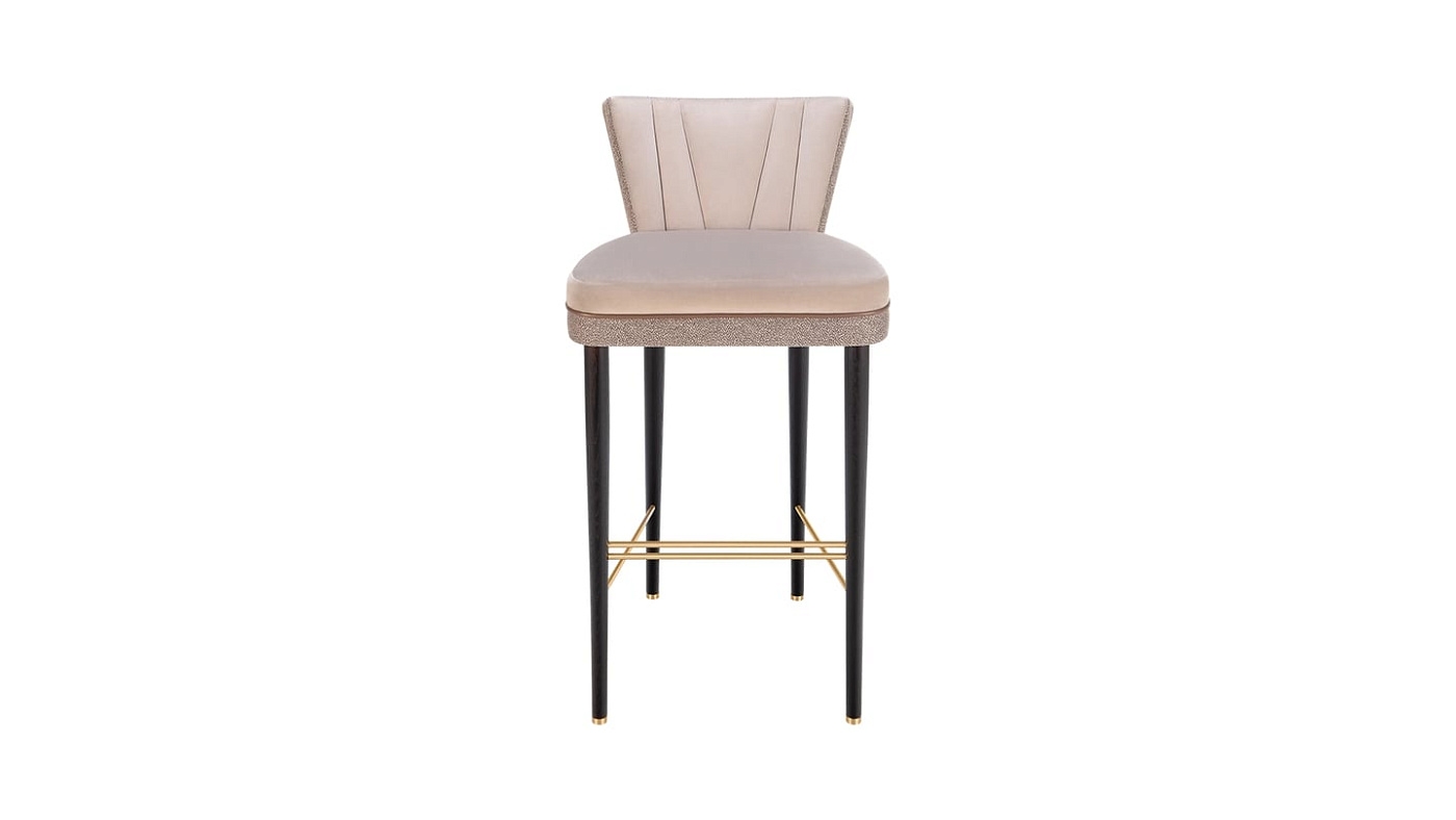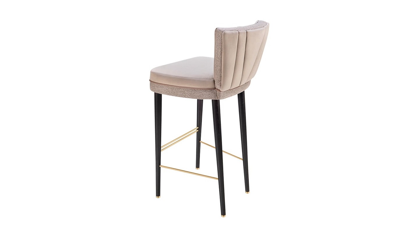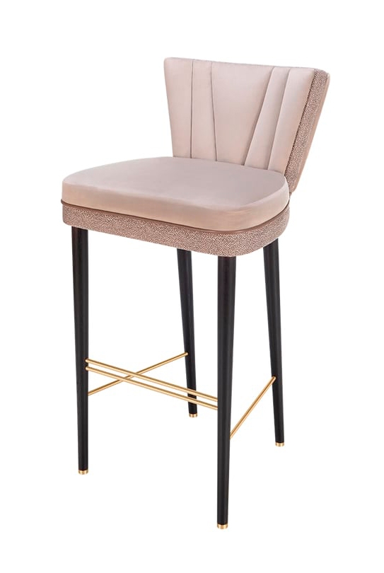 Благодаря облегающему силуэту в стиле корсета, в очаровательном барном стуле BELFAST есть что-то бесспорно женственное. Контрастирующая с гладкой бархатной обивкой текстурированная ткань и кожаная окантовка, длинные ножки выполнены из массива дерева и украшены элементами из мерцающей матовой латуни.