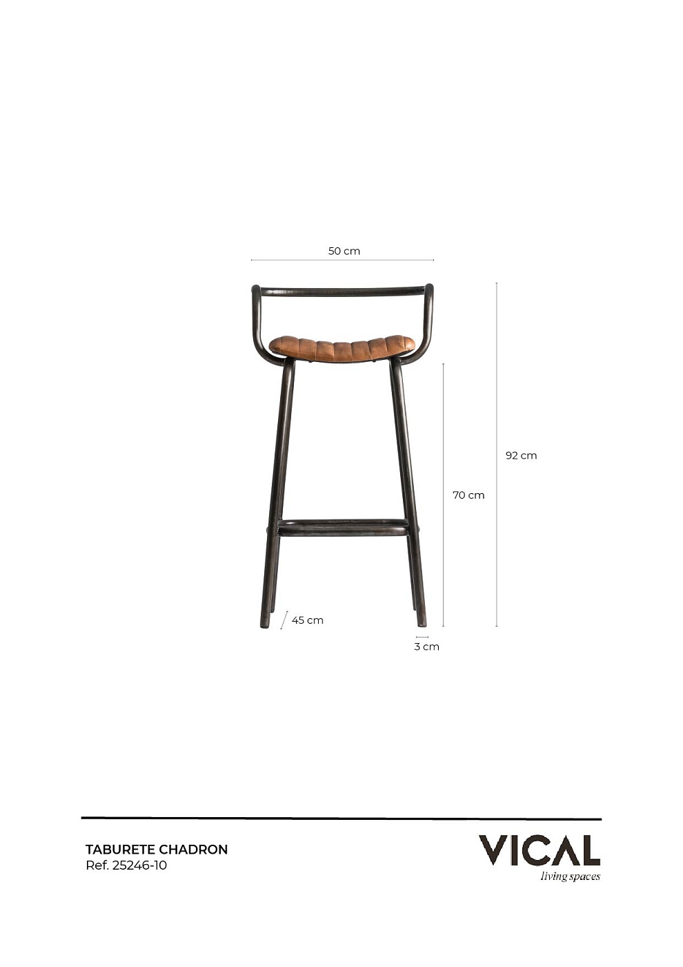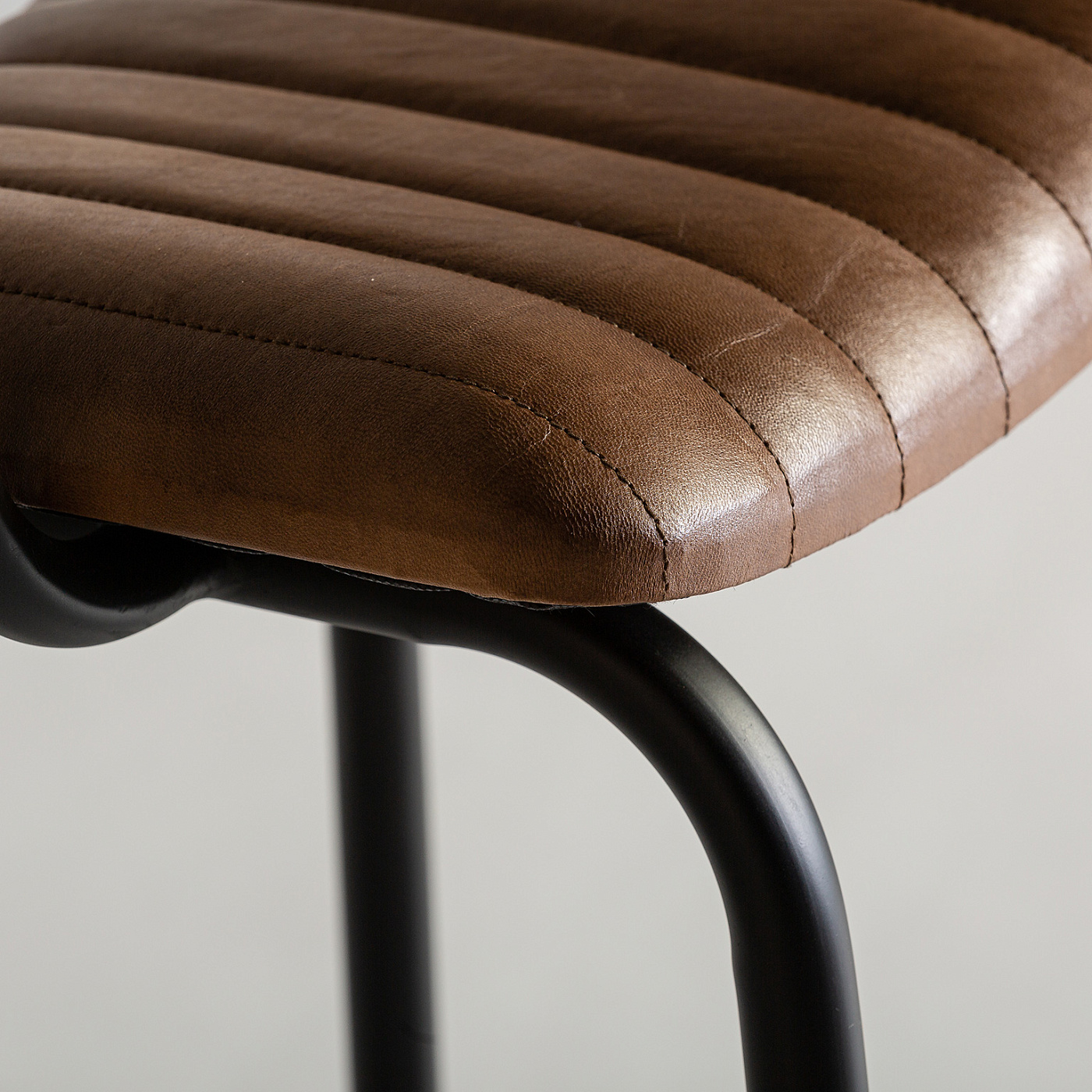 Табурет Chadron, коричневый, винтажный стиль. Изготовлен из железа в сочетании с кожей. Складное изделие.