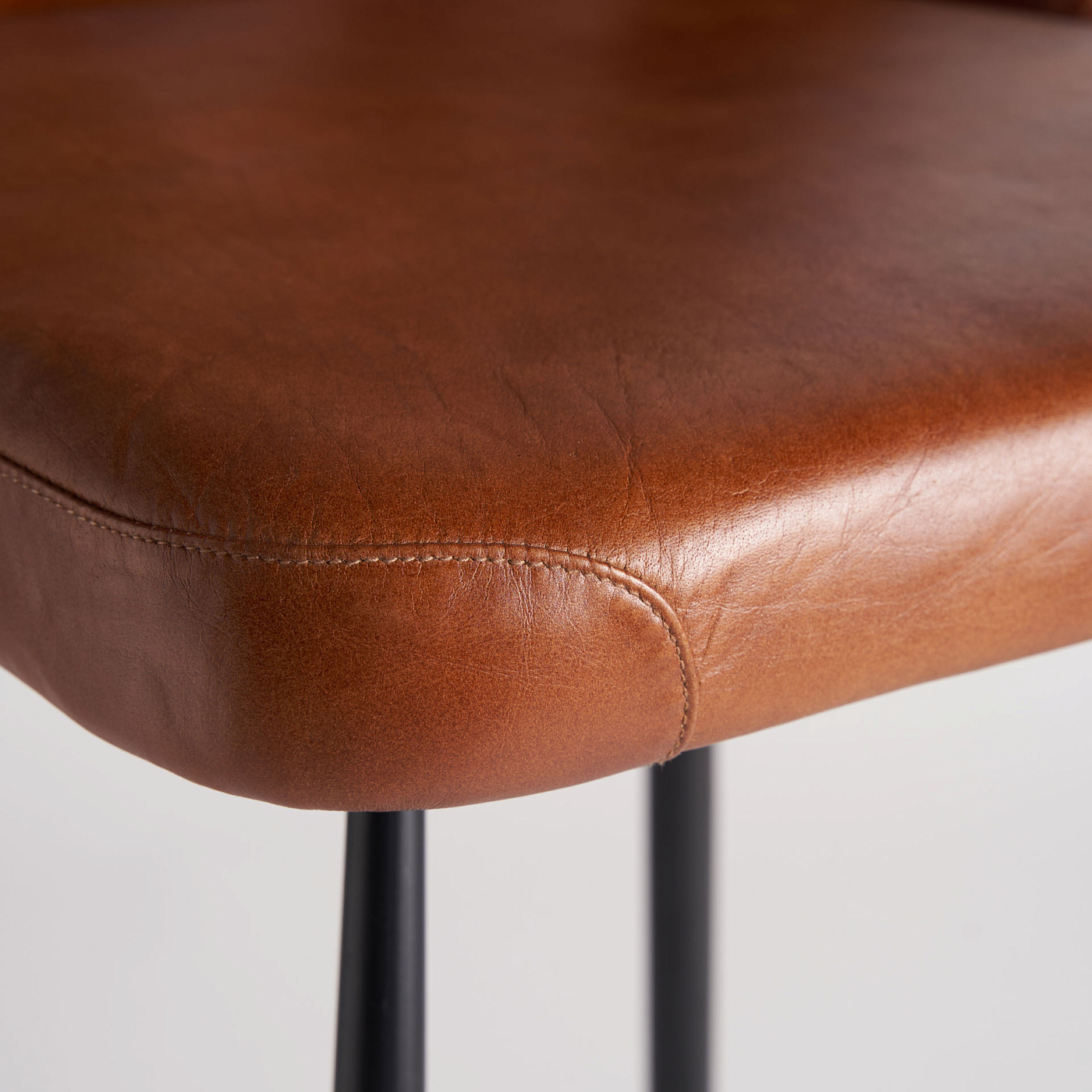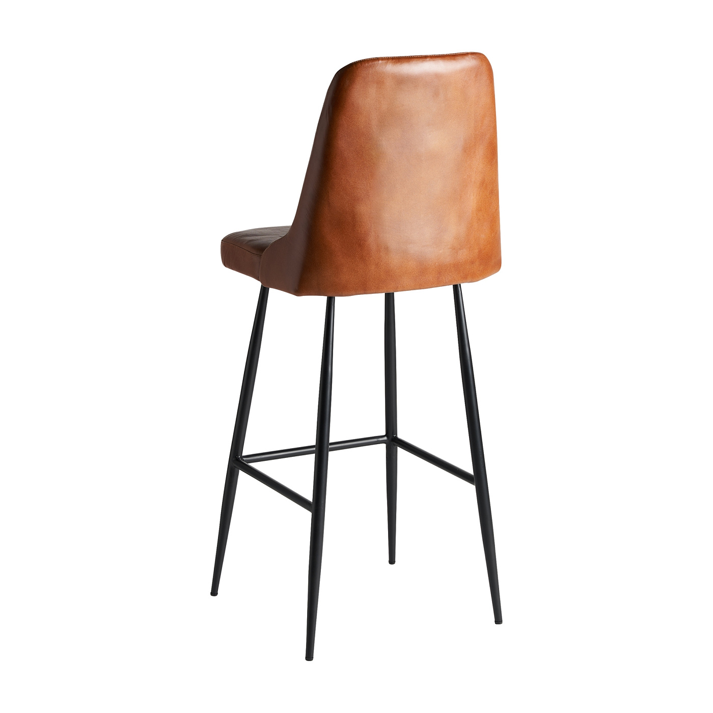 Винтажный стиль, высота и индивидуальность. Этот черный железный табурет с сиденьем из коричневой кожи и пеноматериала идеально подходит для баров в индустриальном стиле с уютной атмосферой. Легко разбирается для сборки. Ширина: 46 см, Глубина: 50 см, Высота: 108 см