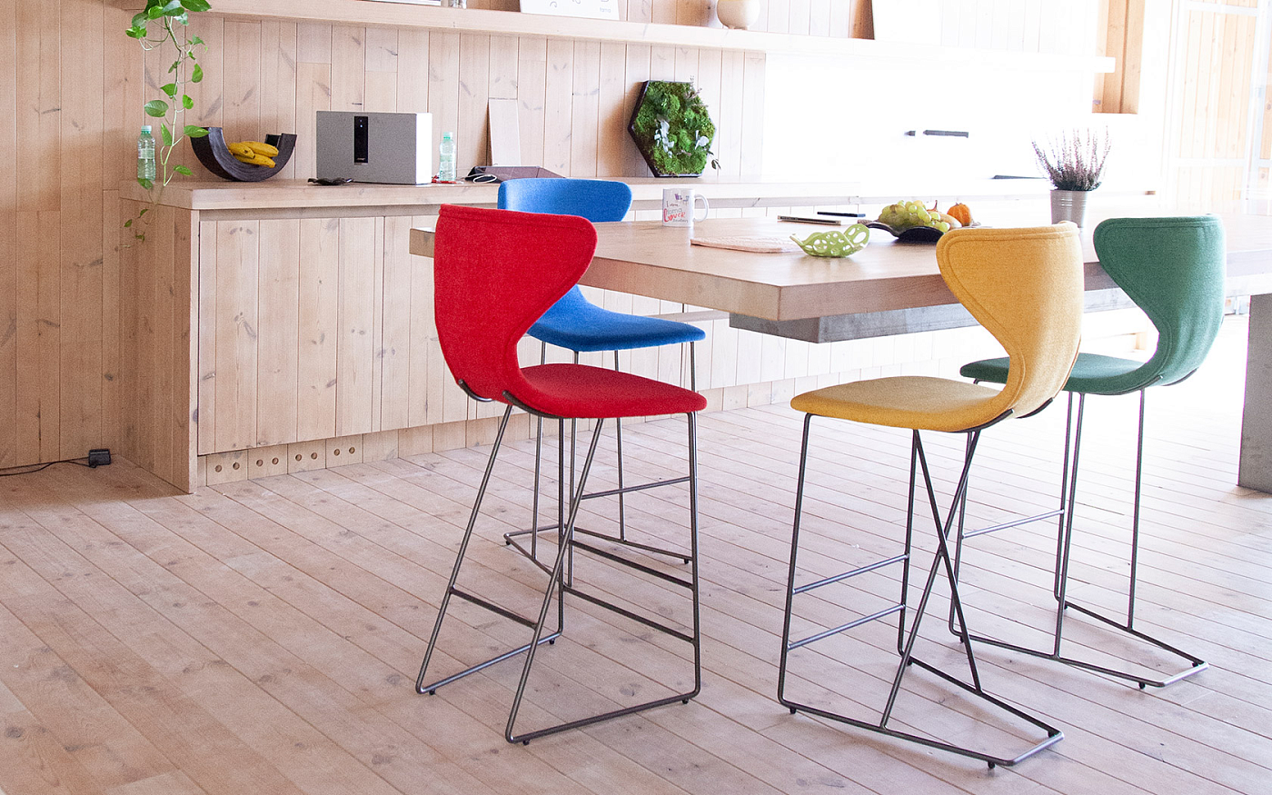Мы представляем новый тип мебели, который наши клиенты постоянно требовали в течение последних нескольких лет: высокие стулья для кухонных баров, которые в настоящее время устанавливаются во многих домах с кухней открытого плана. Имея это в виду, мы создали Helga с деревянными ножками, а также Marlon, Denzel и Burt с металлическими ножками, все они доступны с 3-мя высотами сидений, 45 см (версия для кресла), 65 и 75 см (версия для табуретки). Они выделяются благодаря своему эргономичному дизайну и великолепному комфорту. Модели Denzel, Marlon и Burt в версии для стула (высота сиденья 45 см) могут использоваться в качестве самостоятельных декоративных элементов благодаря их металлическим ножкам без использования в качестве стульев для столовой.