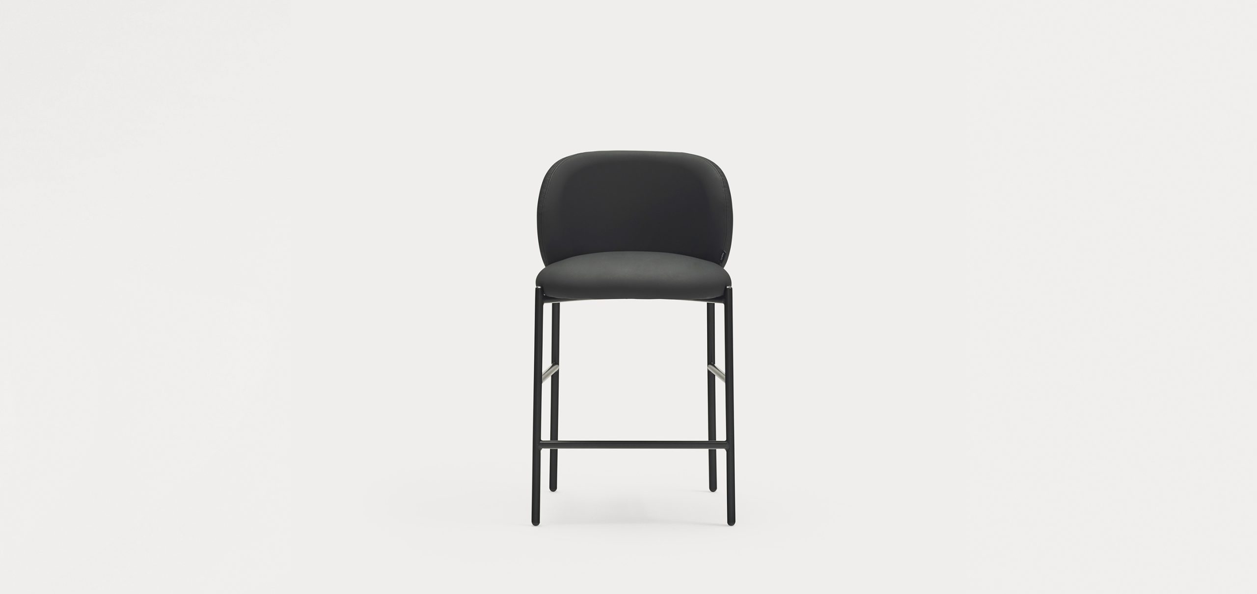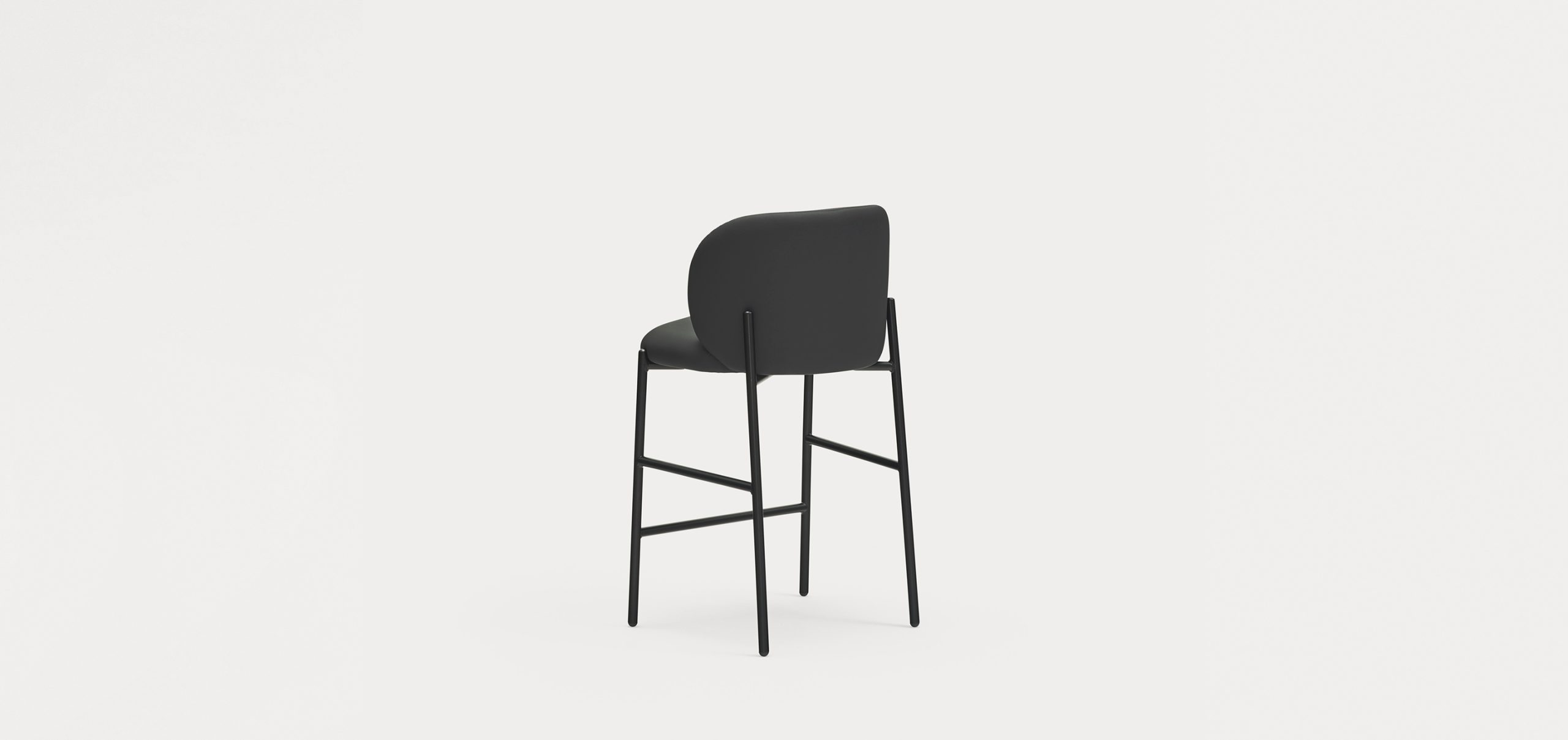 Полубарный стул Zunilda из черной синели и стали с матовой черной отделкой, высота сиденья 65 см.