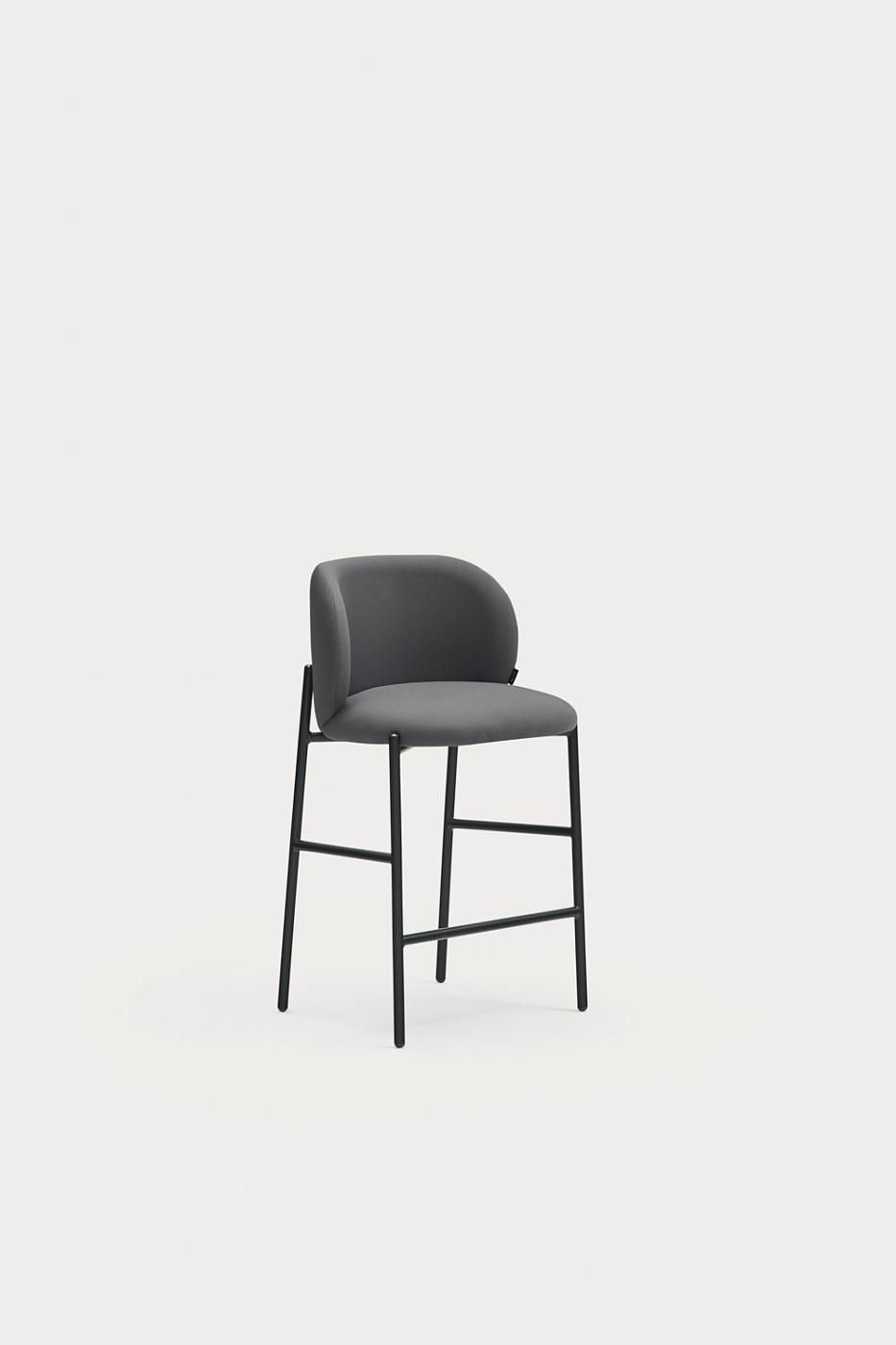 Полубарный стул Zunilda из черной синели и стали с матовой черной отделкой, высота сиденья 65 см.