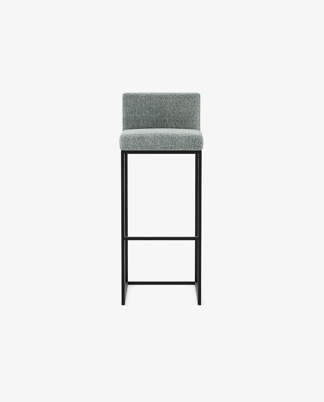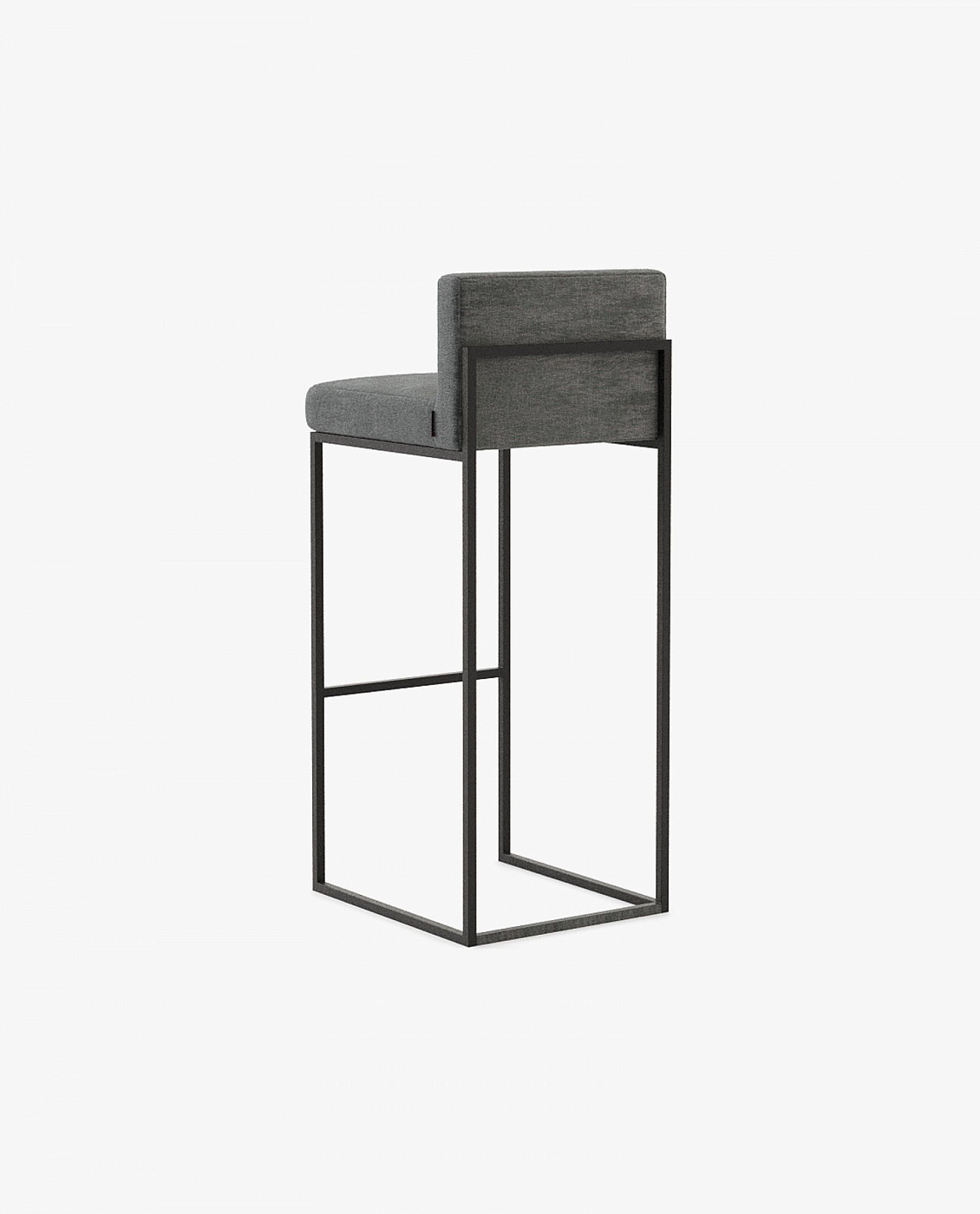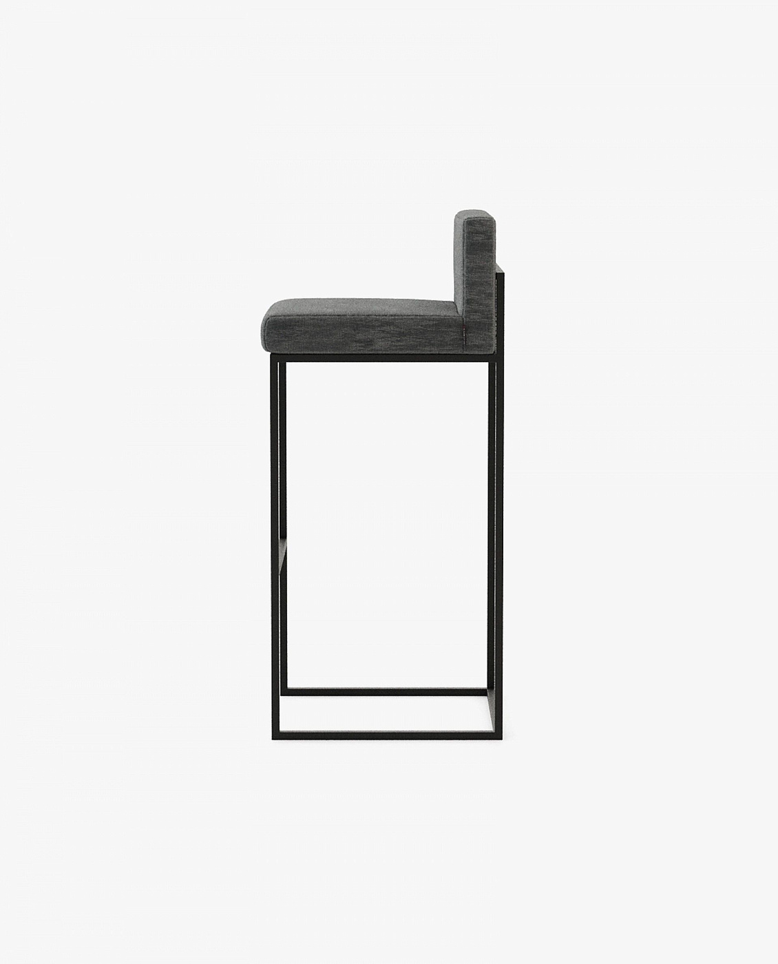 Полубарный стул Zunilda из черной синели и стали с матовой черной отделкой, высота сиденья 65 см.