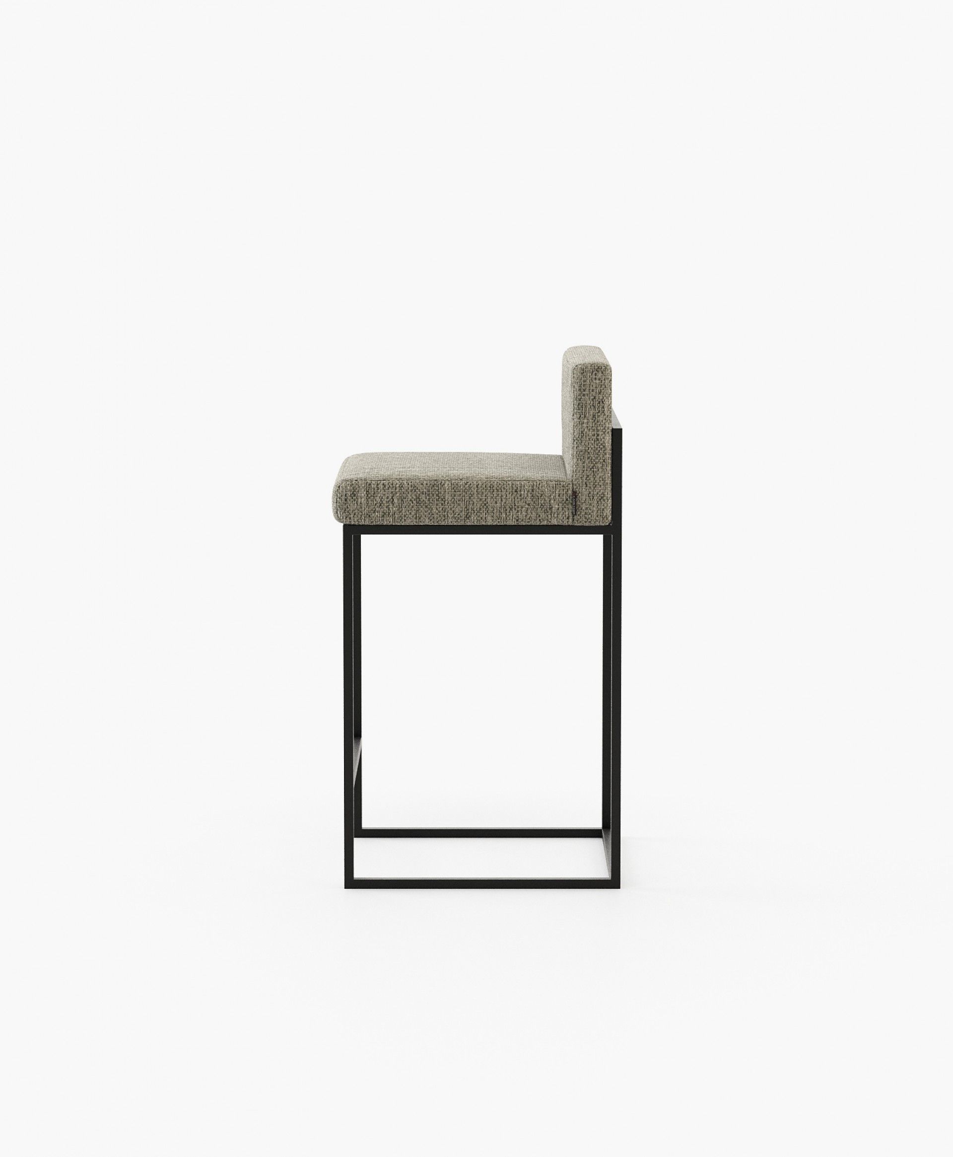 Полубарный стул Zunilda из черной синели и стали с матовой черной отделкой, высота сиденья 65 см.