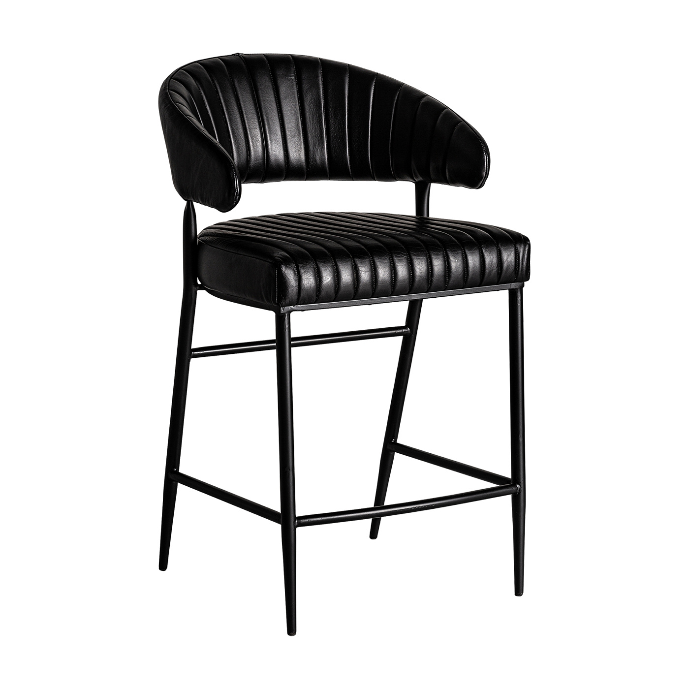 Табурет Ratvik, черный, в винтажном стиле. Изготовлен из кожи, комбинированной с железом.