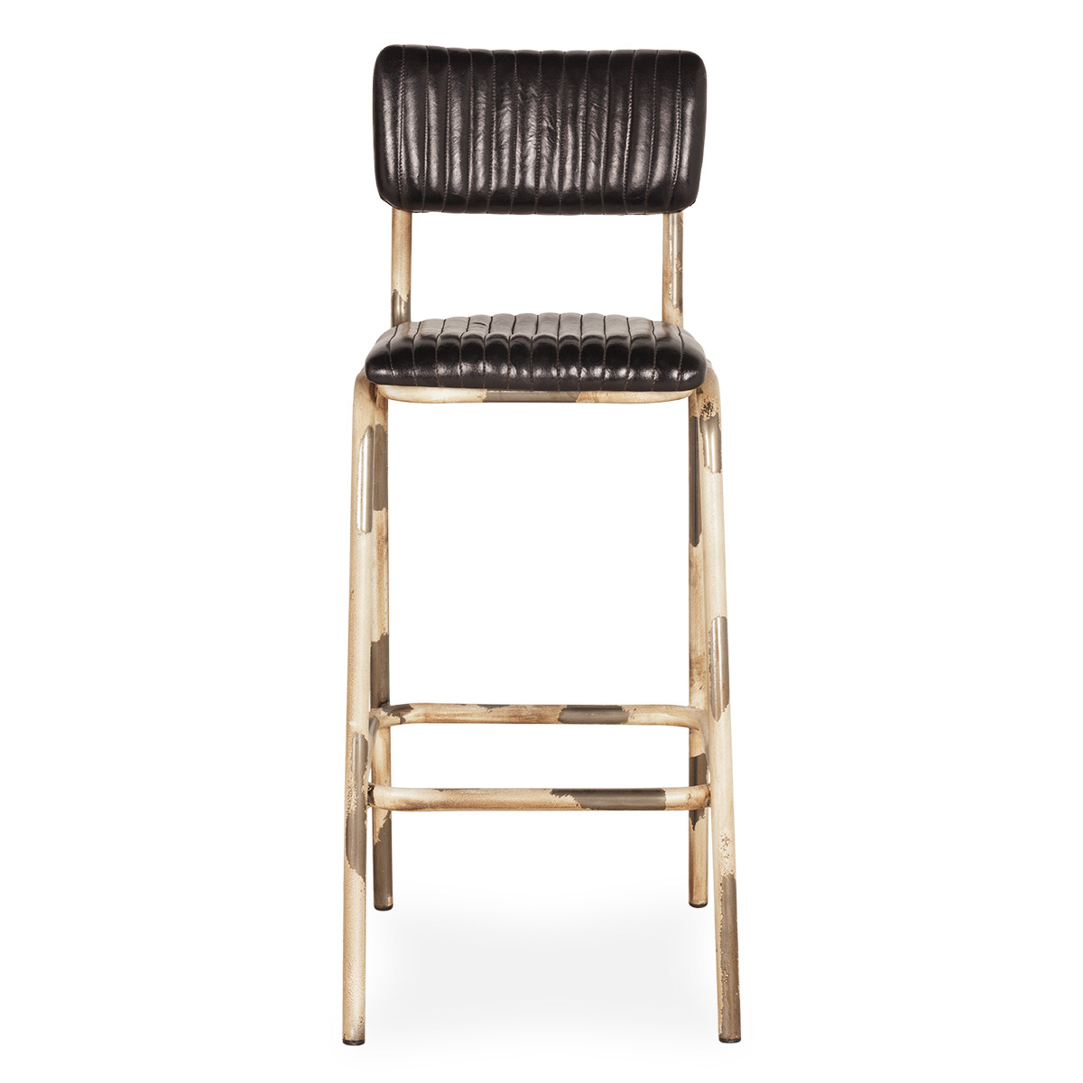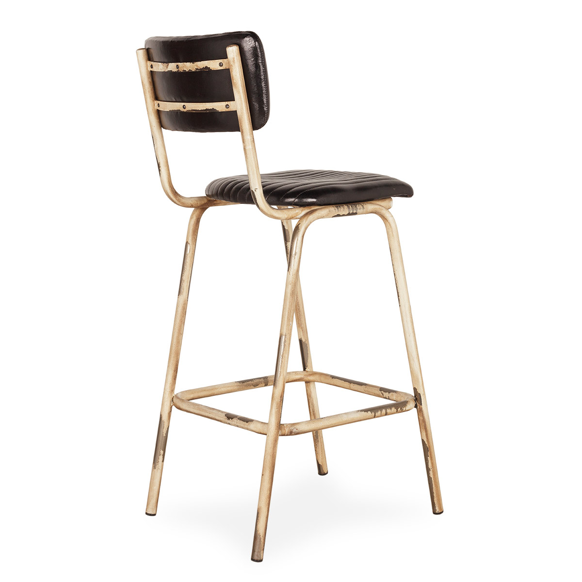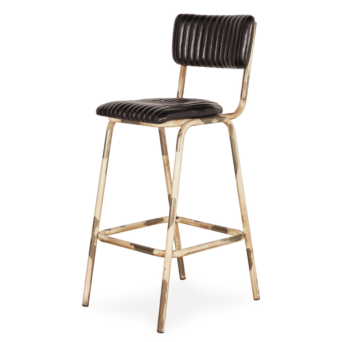 Барный стул Romina из черной кожи с белыми ножками