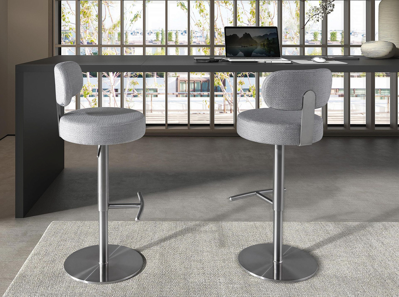 Поворотный барный стул 4230 из серой ткани