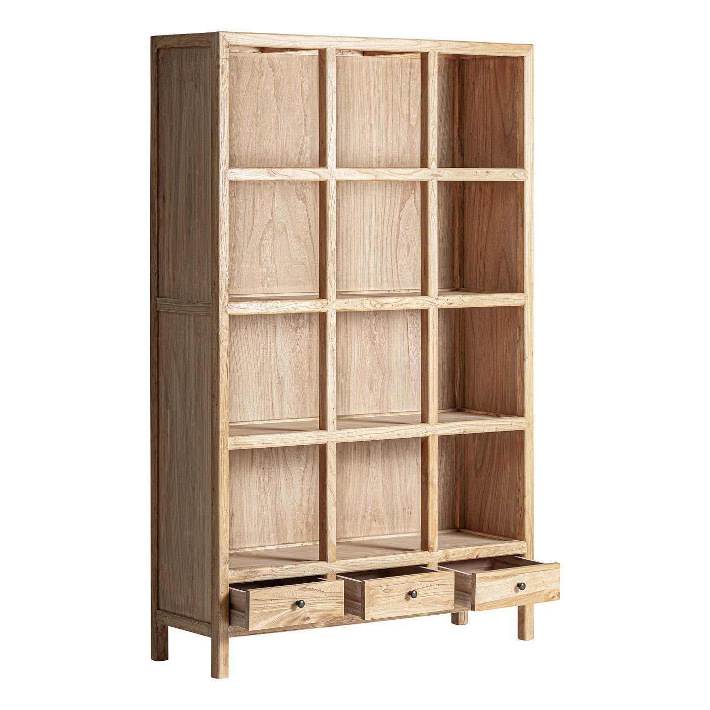 Модульный книжный шкаф Brecey в колониальном стиле. Изготовлен из переработанной древесины вяза, светло-коричневого цвета. Ширина: 120 см, Глубина: 38 см, Высота: 190 см