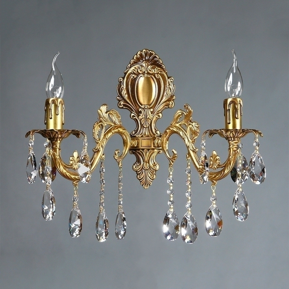 Настенный светильник, выполненный из латуни в матовой бронзовой отделке с подвесками в форме капли из хрусталя Asfour.