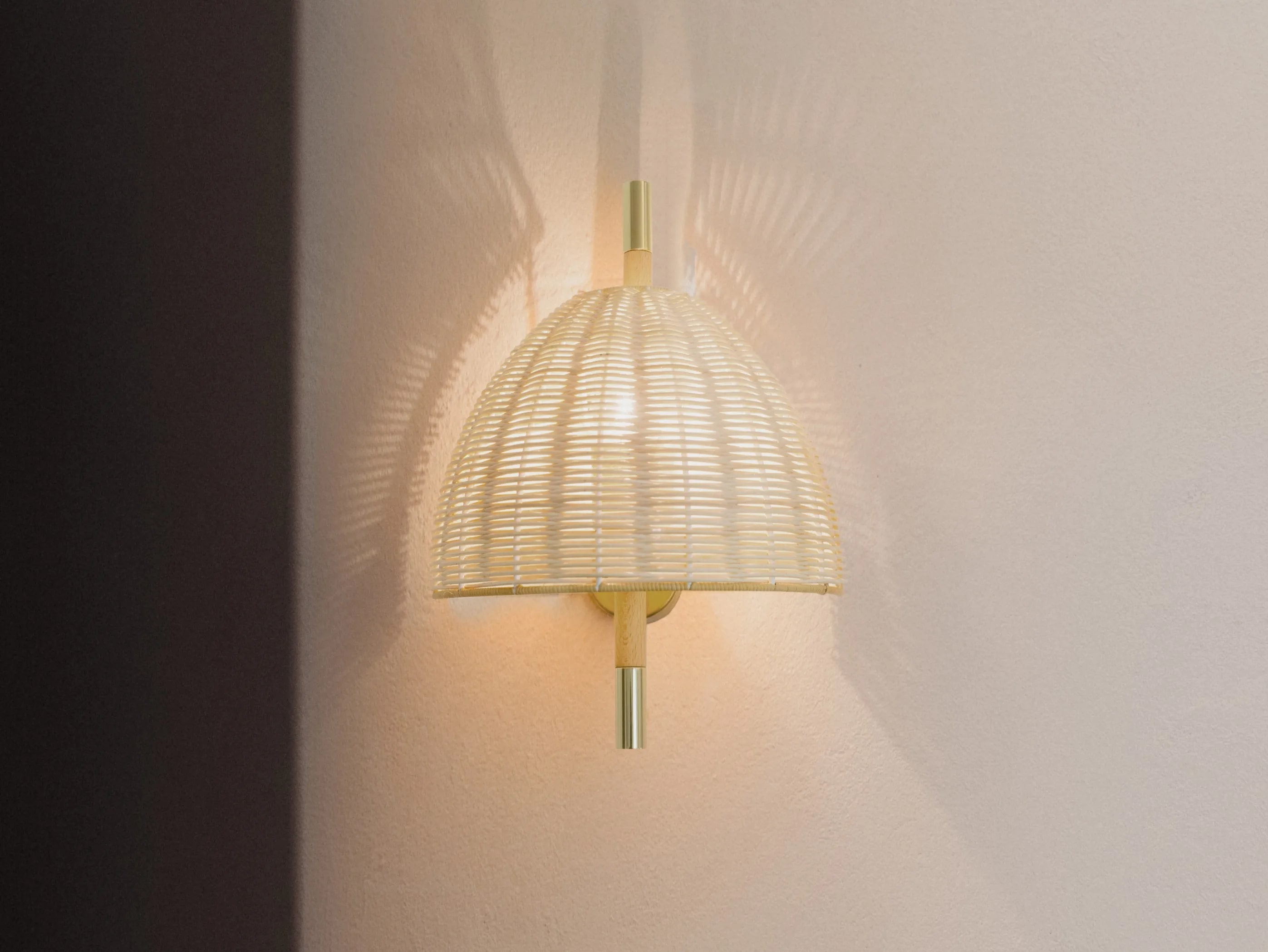 Amà A — настенный светильник с каркасом из белой или полированной латуни. Абажур из натурального ротанга ручной работы. Amà происходит от каталонского «a mà», что означает «сделано вручную», и именно так производится эта коллекция. Каркас из бука ручной работы, детали из цельной латуни и абажур из натурального ротанга ручной работы. Средиземноморский, простой, элегантный. Дизайн разработан студией Chitarrini в Барселоне и вдохновлен атмосферой средиземноморских домов великих архитекторов XX века.Это дань уважения местным ремеслам.