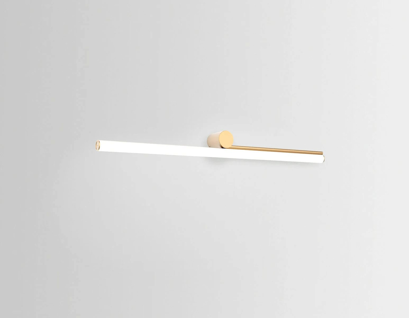 Настенный светильник доступен в двух вариантах отделки – черном и матово–золотом - и в трех вариантах длины – 60, 90 и 210 см. Его можно устанавливать вертикально или горизонтально. Дизайн, который легко адаптируется и предлагает множество возможностей для освещения проектов любого типа.