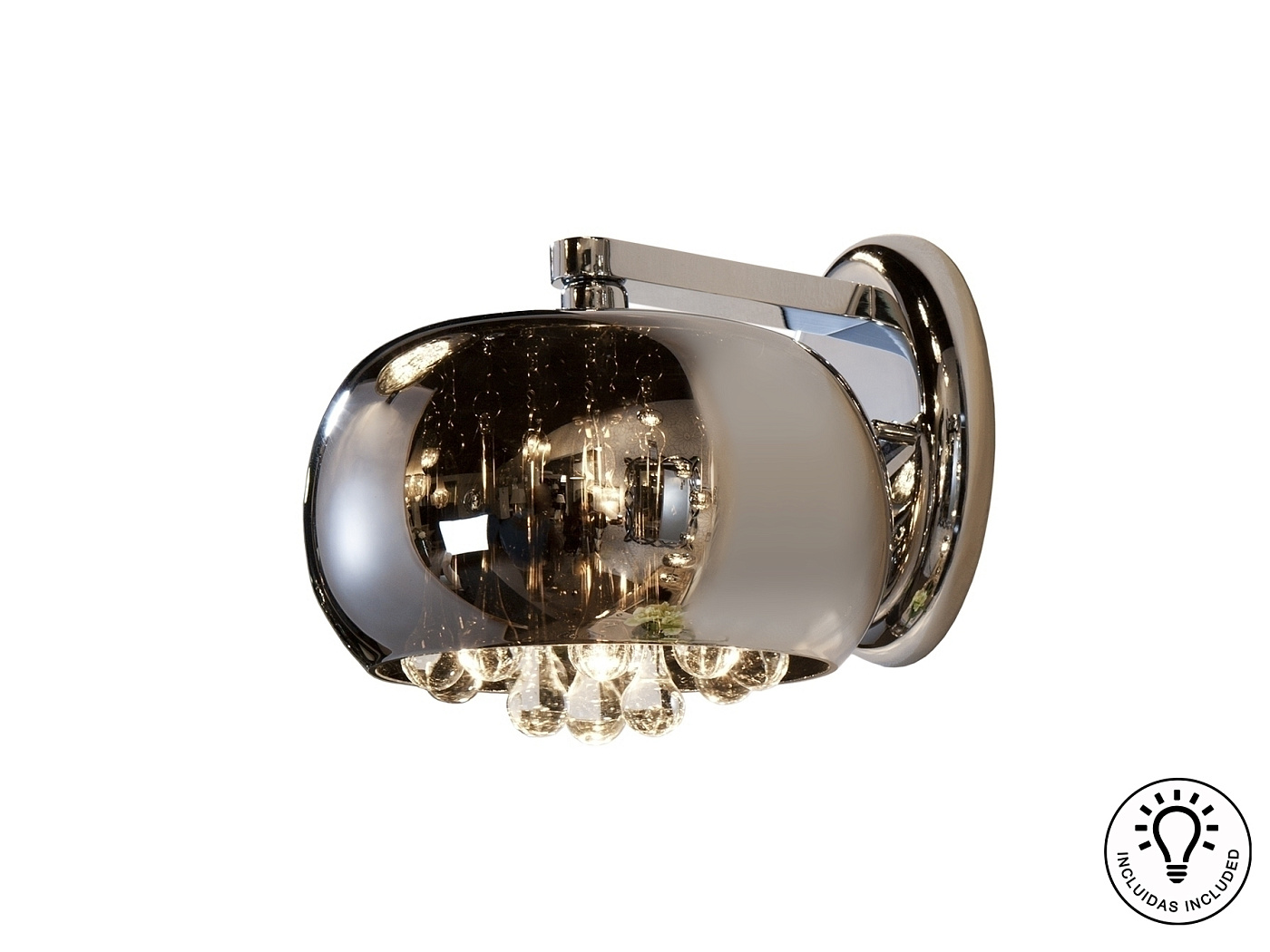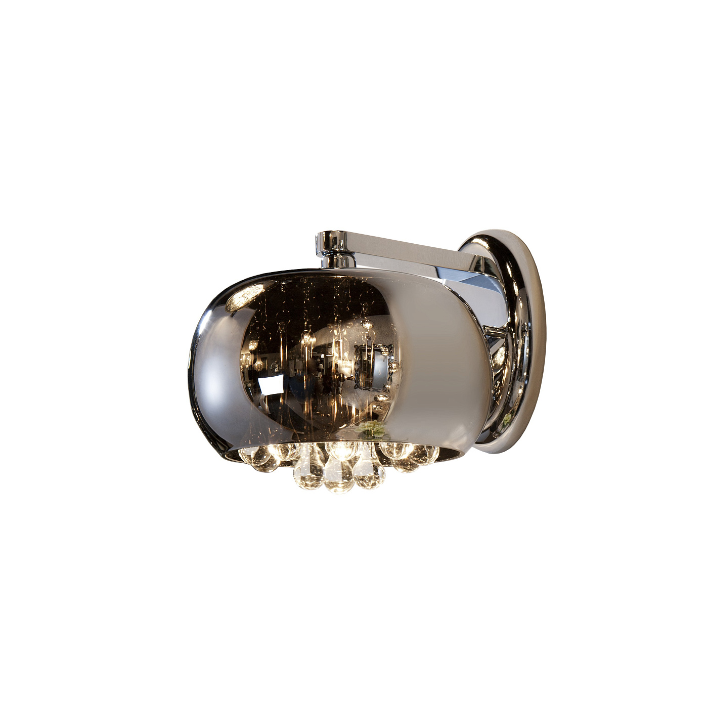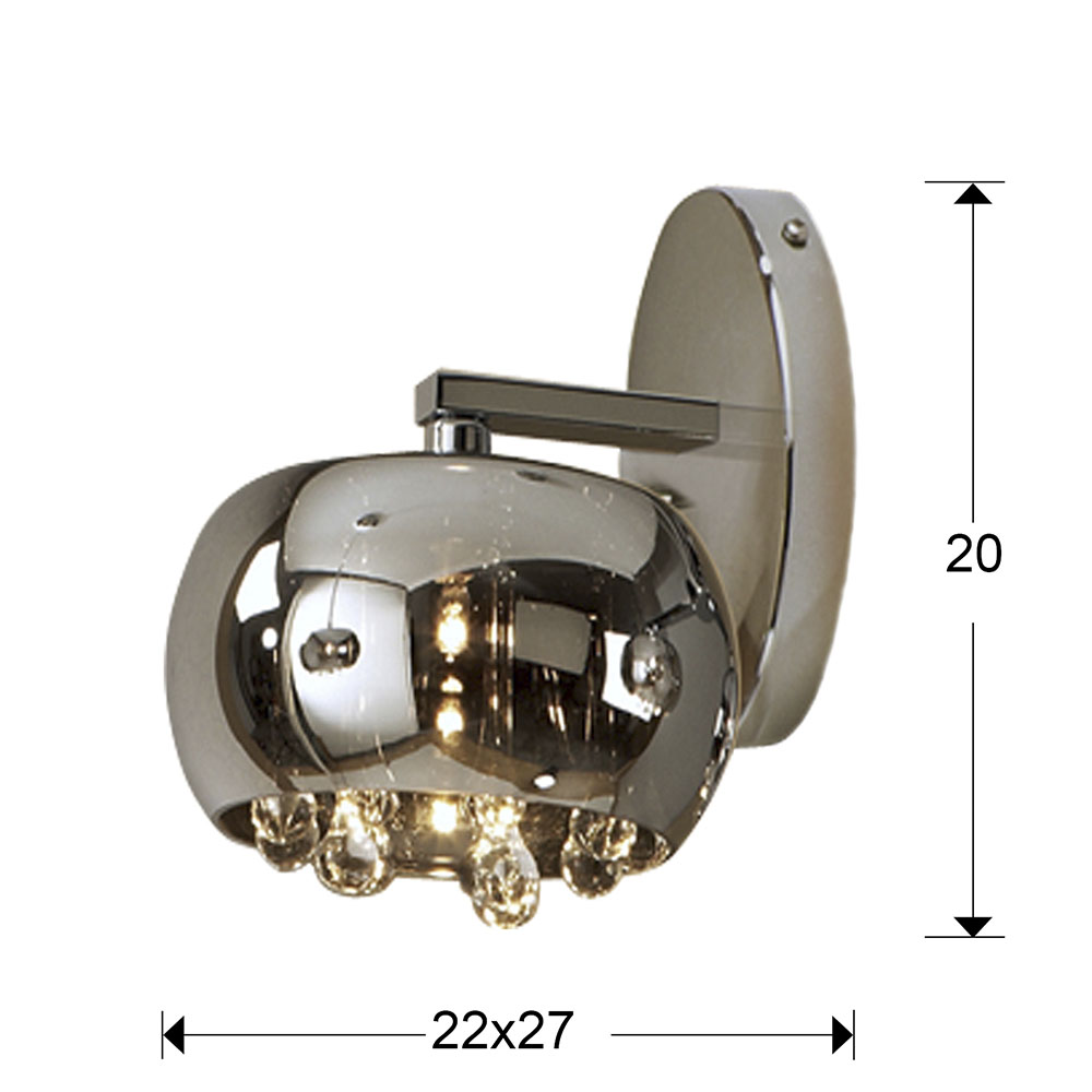 Бра из металла с покрытием "блестящий хром", плафон из зеркального стекла с подвесками внутри из муранского стекла. Включает 1 светодиод G9 6 Вт.