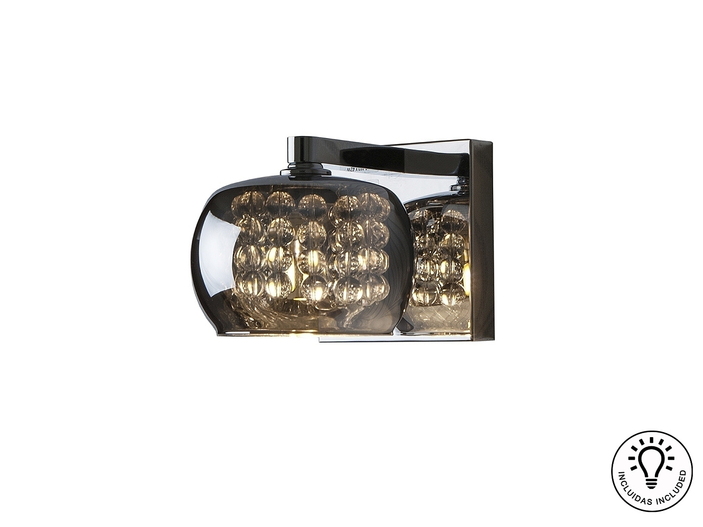 Бра из стали с блестящим покрытием. Плафон из зеркального стекла, внутри бусины из стекла, Включает 1 светодиод G9 6 Вт.