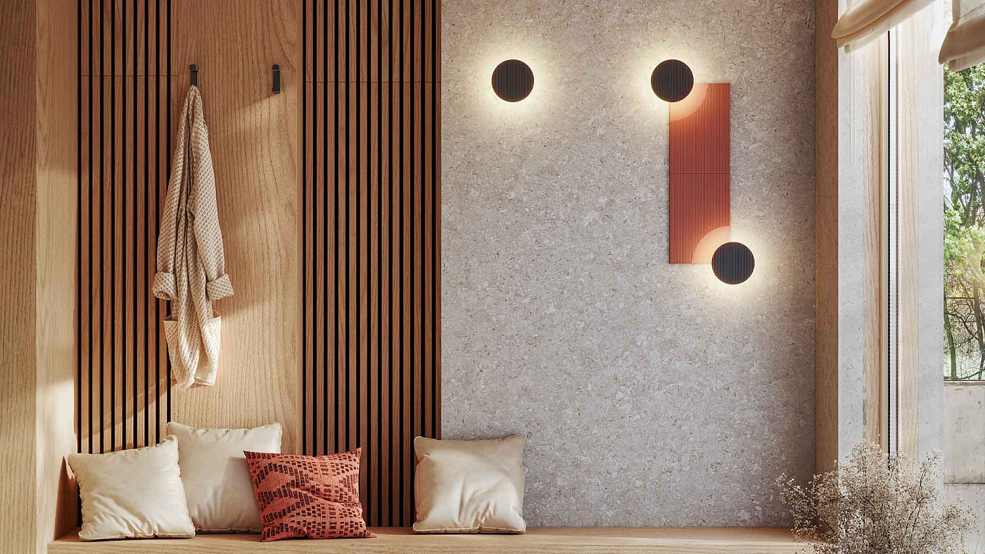 В основе Arid лежит простая, но мощная идея: модульное изделие, воплощающее красоту и безмятежность природы. С первых набросков Натранг задумал создать настенный светильник, который был бы гибким, адаптивным и мог бы по-новому преобразить любое пространство. Его целью было создать светильник, который не только был бы функциональным, но и вносил бы свой вклад в общую атмосферу, добавляя уникальный штрих каждому проекту, сохраняя при этом единую идентичность продукта. Свет мягко исходит от стены, мягко повторяя форму бра и оставляя впечатление, напоминающее отпечаток природы на поверхностях.