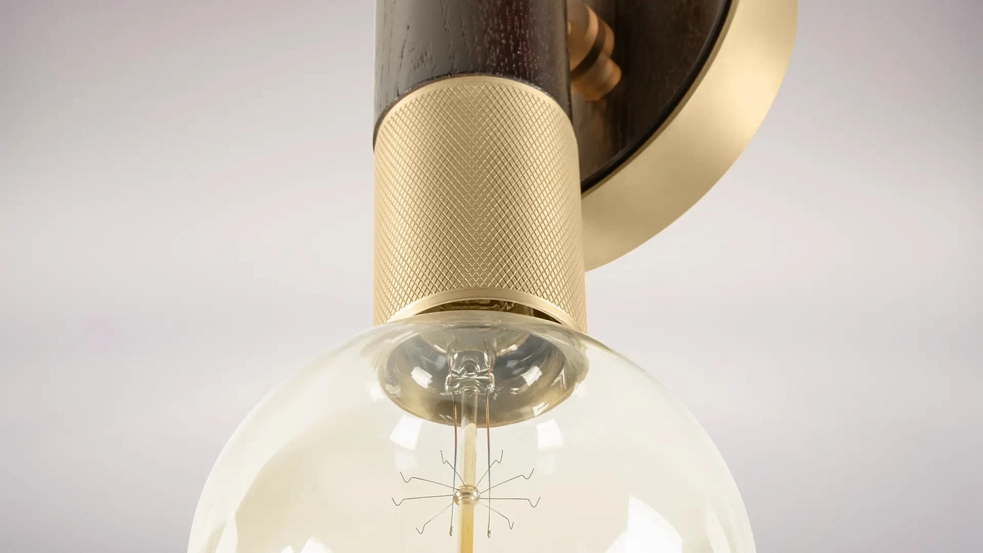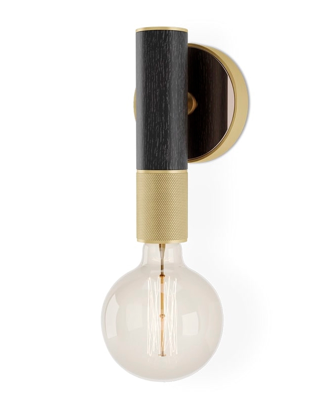 Урезанная форма настенного светильника ASPEN сочетает в себе индустриальное влияние с декоративными качествами. В конструкции с голой лампочкой щедрых пропорций сочетаются элементы массива дерева, бронзового зеркала и латуни.