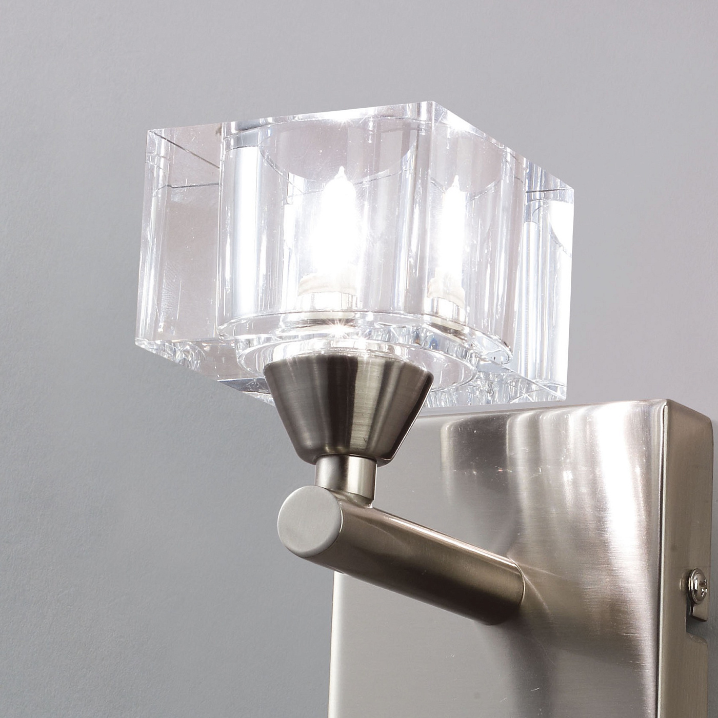 Стильный настенный светильник Cuadrax, выполненный из металла в матовой или блестящей хромированной отделке или в бронзовой отделке с плафонами из прозрачного или оптического стекла на выбор, придаст яркость и блеск любому помещению. Галогенные лампы Osram входят в комплект.