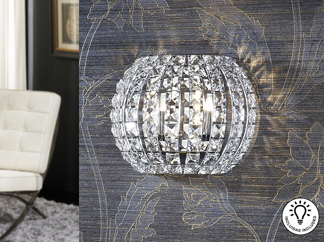 Бра из металла с покрытием "хром", плафон из квадратных кристаллов из прозрачного стекла, Включает 2 светодиода G9 мощностью 6 Вт.