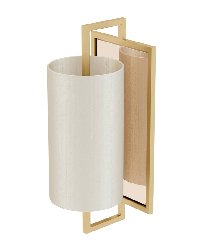 Осветите свои стены и свою жизнь с помощью супер-шикарного настенного светильника GOA. Угловатая рама из матовой латуни подвешивает цилиндрический абажур из двойного шелка, который отбрасывает свет сверху и снизу, в то время как задняя панель из бронзового зеркала играет отражениями.