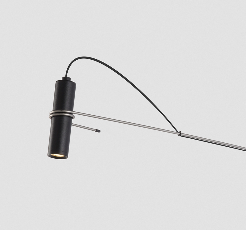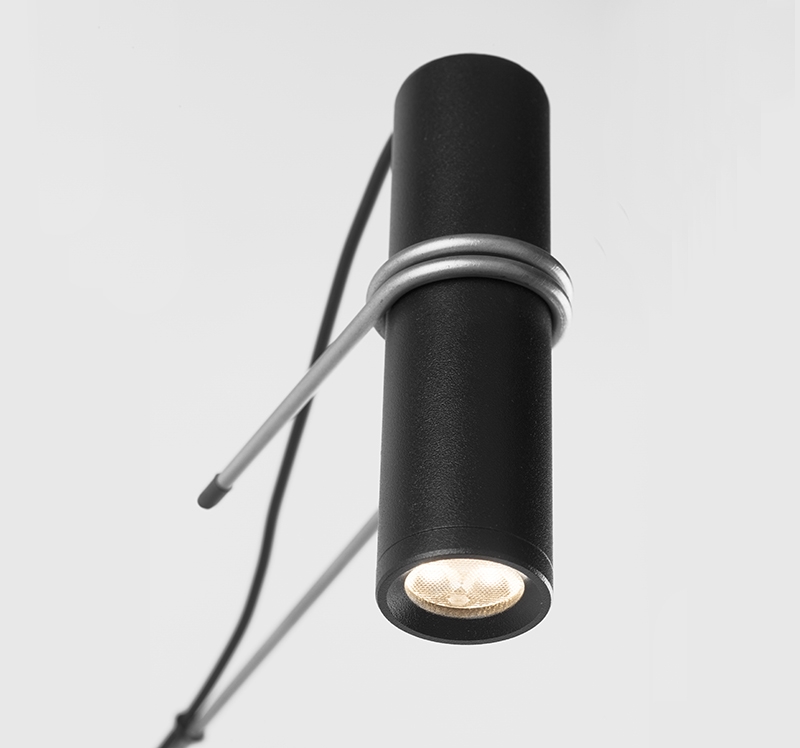 Hold — это коллекция с цилиндрическим рассеивателем, который излучает мягкий рассеянный свет в сочетании с более направленным освещением. Стержень, обвивающий рассеиватель, придаёт светильнику уникальную индивидуальность. Натяжение стержня и массивность источника света создают объект, который чётко и непосредственно демонстрирует свой дизайн и функциональность без необходимости в дополнительных элементах. Соединение этих двух элементов за счёт трения вызывает ощущение лёгкости и сдержанности. В целом изделие выделяется своим характером и изящными пропорциями, игрой с вертикалью и особой элегантностью.