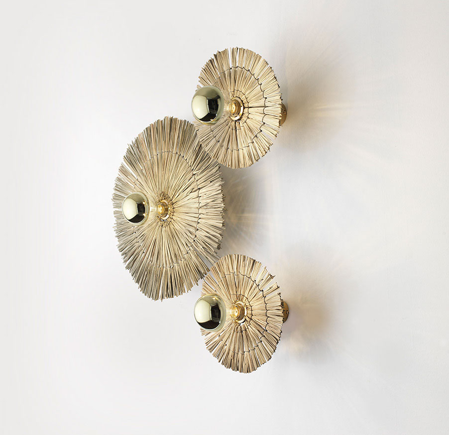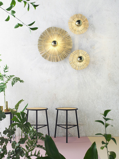 Бра Laos натуральная соломка 30 cm + цоколь 5 cm золотой металл