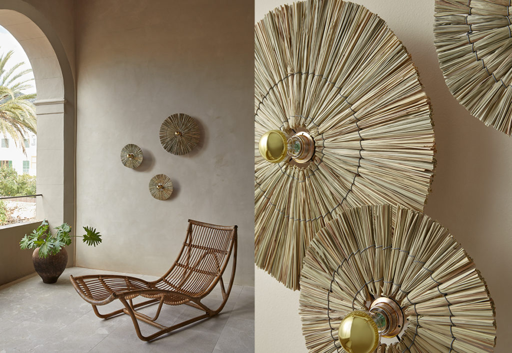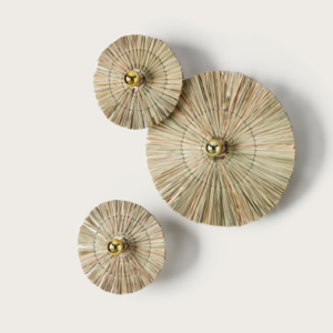 Бра Laos натуральная соломка 50 см + цоколь 5 см черный металл