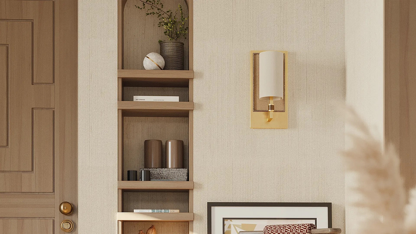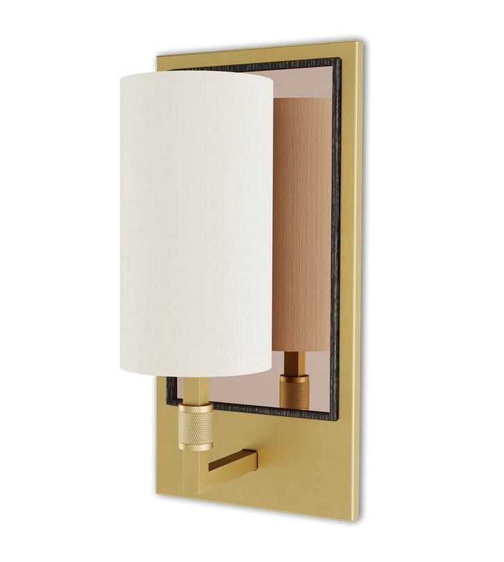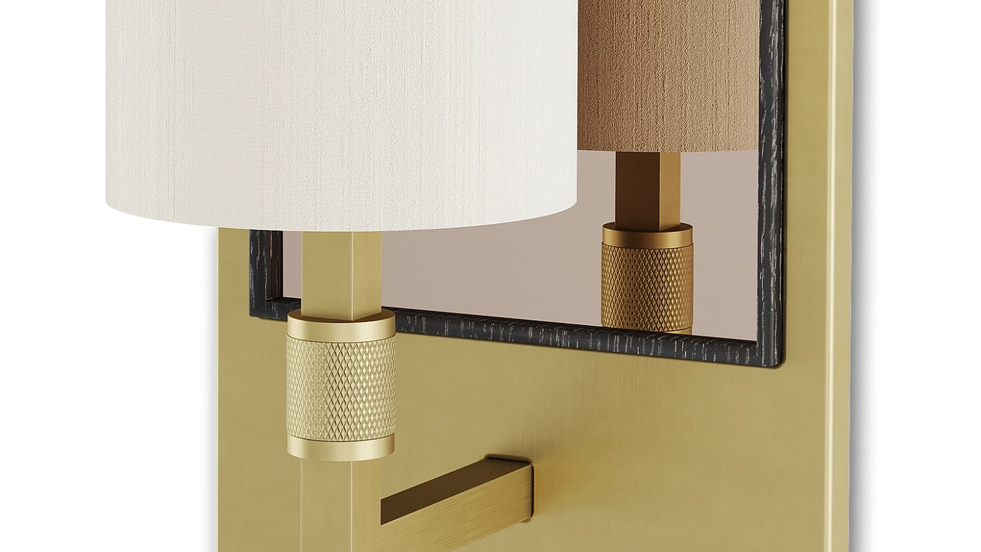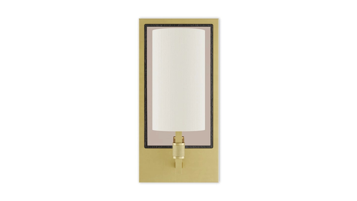 Традиции и современность сочетаются в этом настенном светильнике LOMBOK с чистой облицовкой, основание из матовой латуни которого украшено изящно сплетенной тканевой панелью.