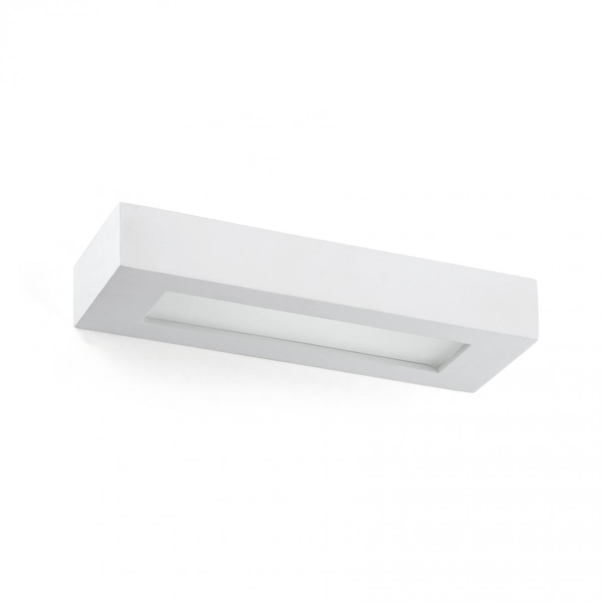 "OLAF - это настенный светильник из гипса для внутреннего освещения. Этот настенный светильник дает свет сверху и снизу и идеально подходит для освещения внутренних проходов, например коридоров."