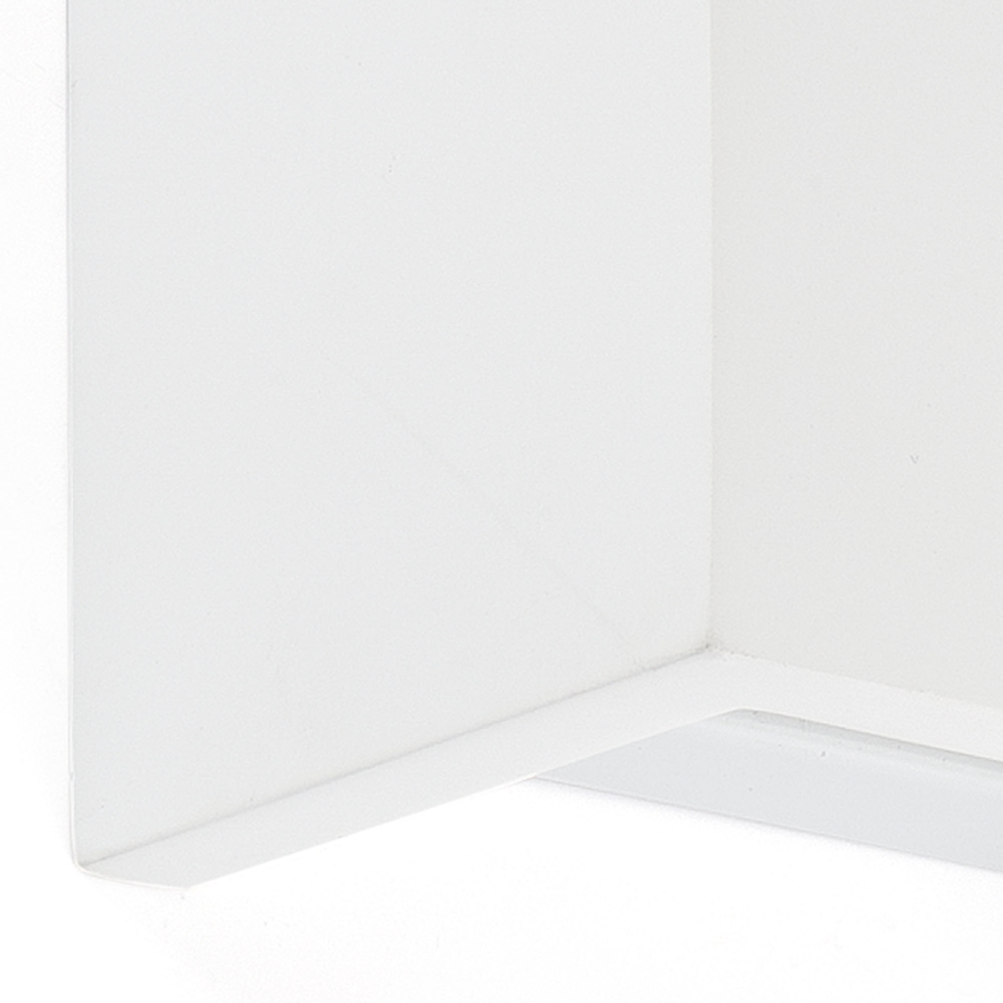 "Настенный светильник квадратный и белый, гипсовый. Этот настенный светильник дает свет сверху и снизу, что позволяет освещать комнату более равномерно. Светильник в современном стиле с чистыми линиями.