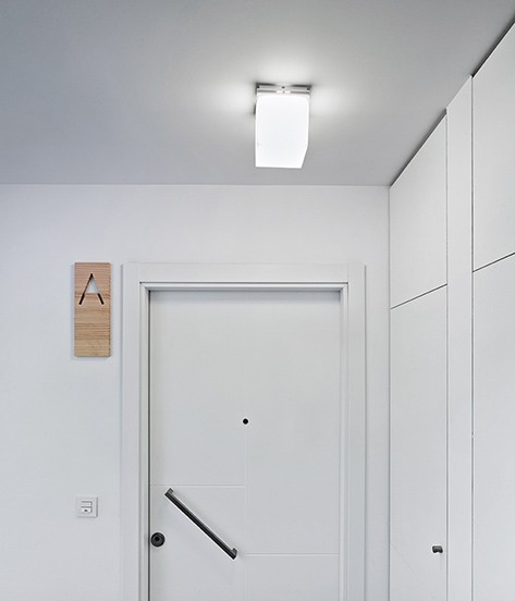 Настенный или потолочный светодиодный светильник с рассеивателем из поликарбоната опалового белого цвета и основанием из алюминия, окрашенного в белый матовый цвет.