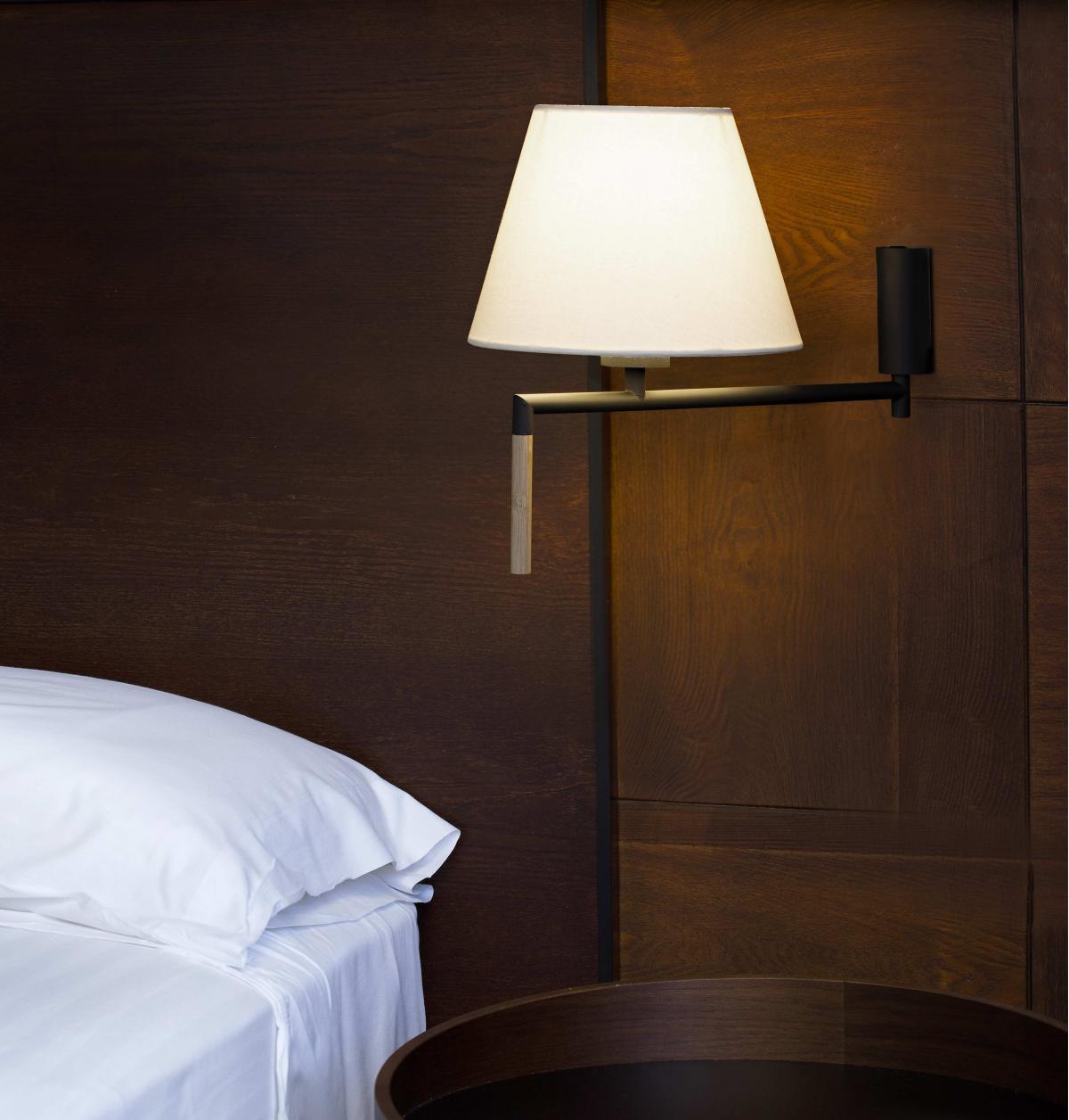 RON - настенный светильник для дома . Структура, которая прекрасна и современна по стилю, разработана Пепе Ллоде и имеет одну металлическую часть и одну бамбуковую часть. Для завершения этого света вы можете выбрать один из разных оттенков. Тень не входит.