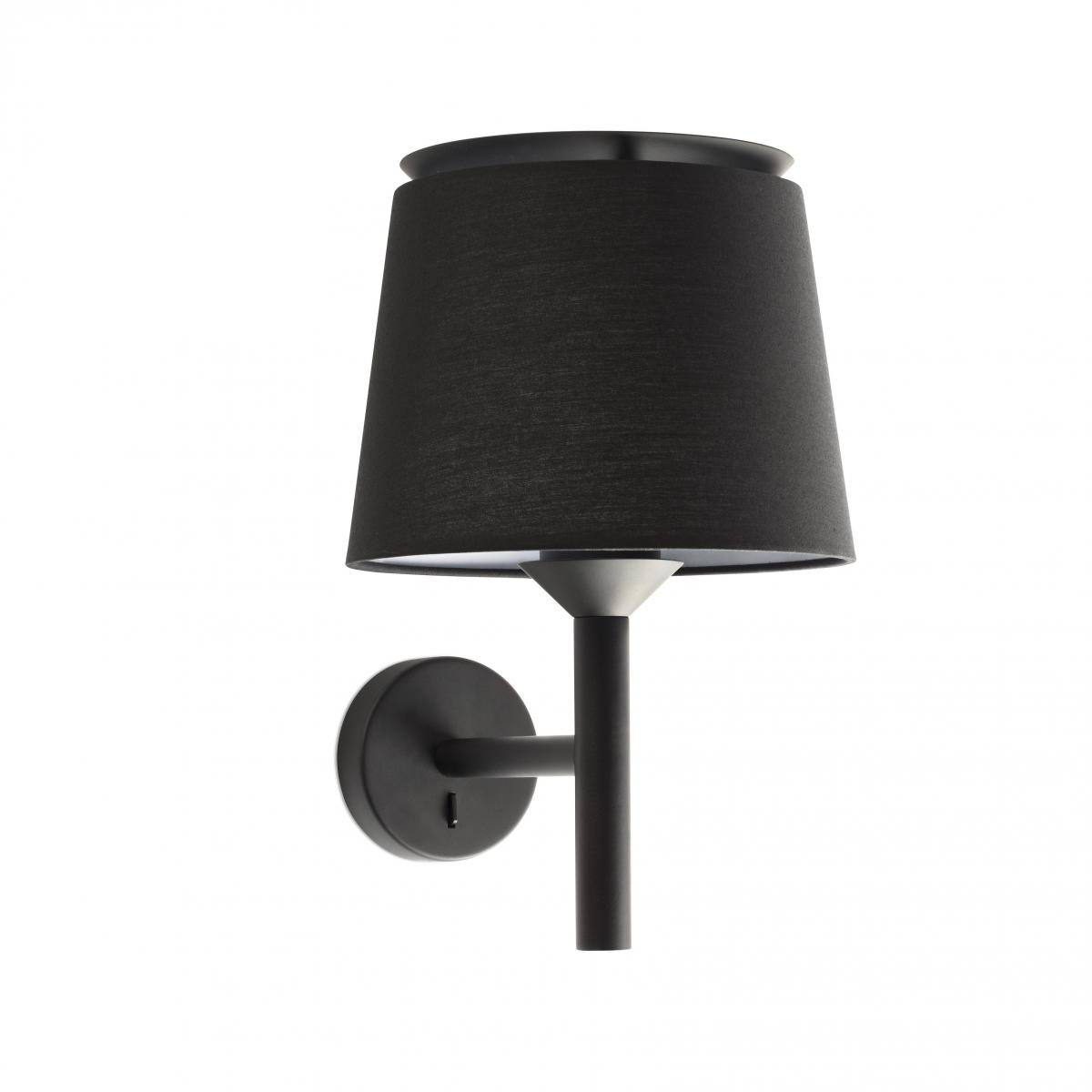 SAVOY - черный настенный светильник с черным текстильным плафоном для внутреннего освещения, разработанный Исааком Пиньейро. Его структура характеризуется кольцом, расположенным в верхней части, где отражается свет, создавая красивое отражение.