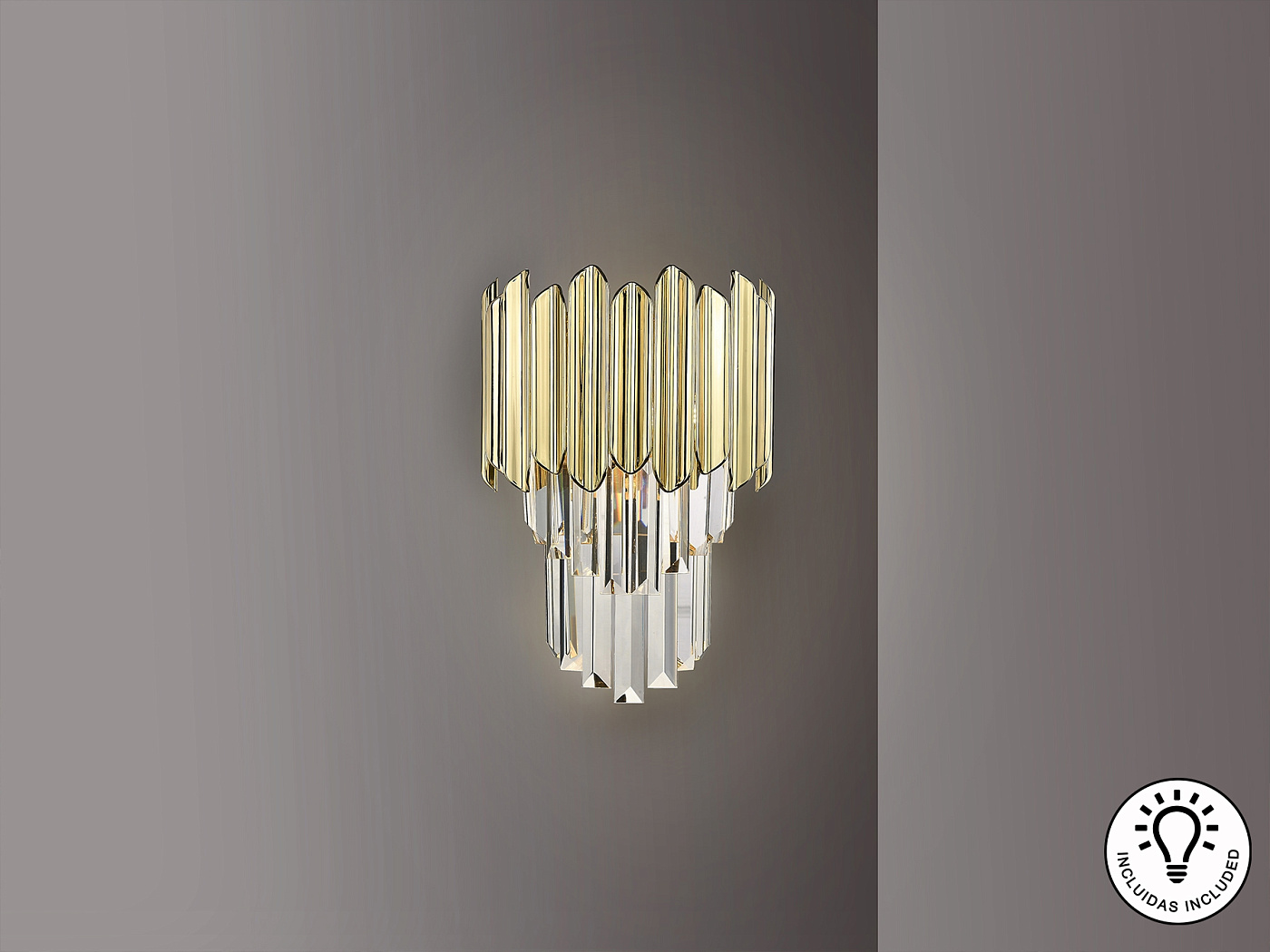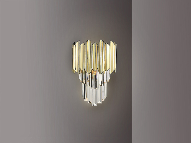 Настенный светильник из металла, хромированная отделка. Абажур из граненых стеклянных призм с деталями из АБС-пластика с позолоченным покрытием. ·В комплект поставки входит 1 светодиод G9 мощностью 6 Вт.