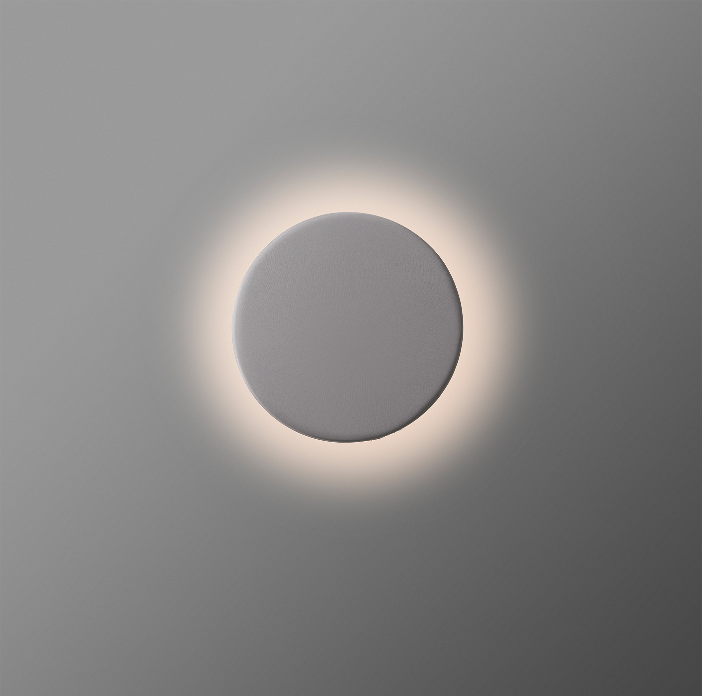 TOU - это дизайнерский настенный светильник, созданный Faro Lab. Он изготовлен из алюминия и имеет покрытие из ткани и поролона. Свет косвенно излучается круглым лучом его конструкции. Это позволяет создавать разные комбинации и красивую ванну из света. Его можно найти в двух размерах и цветах. Это серая версия диаметром 35 см.
