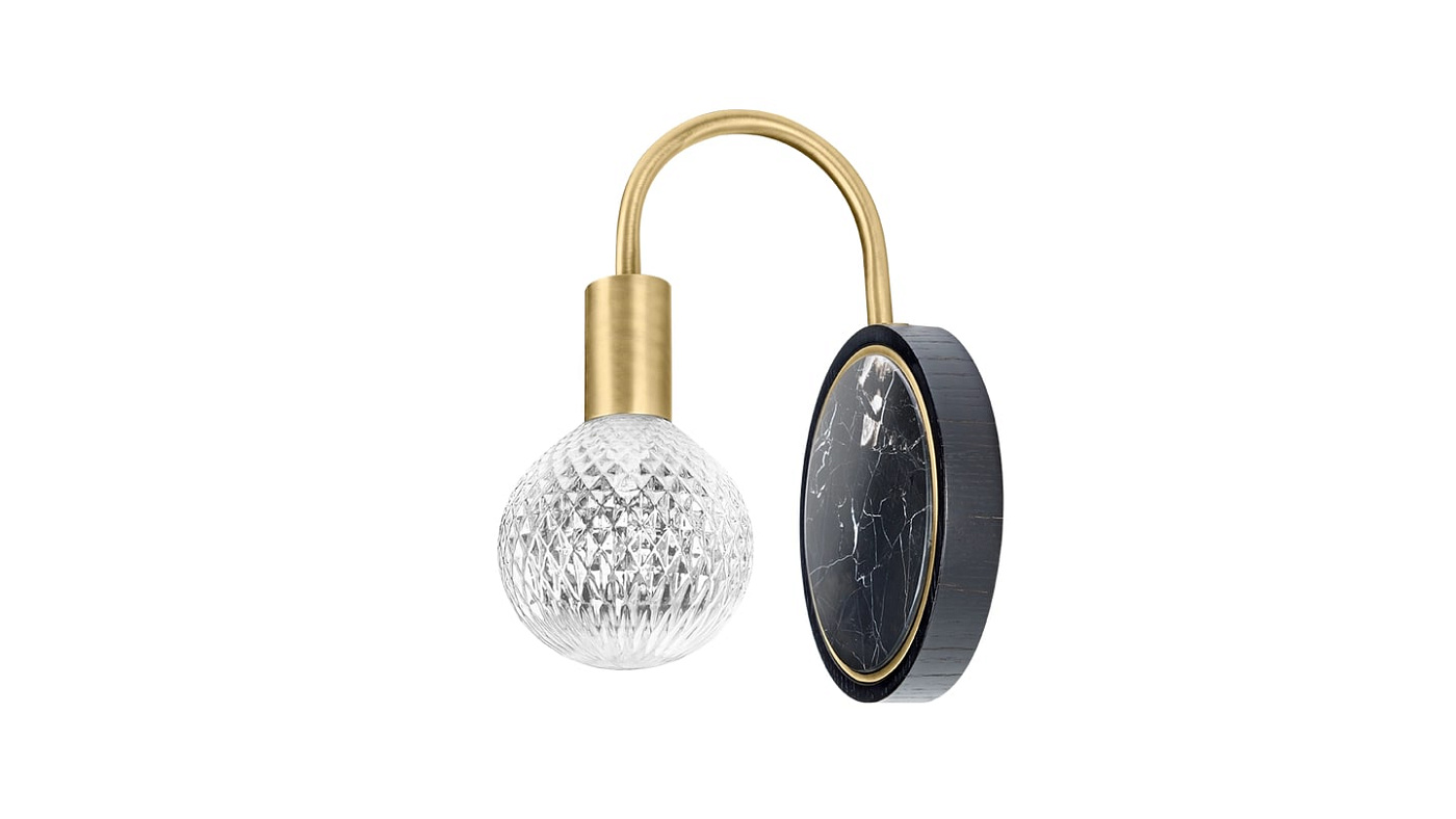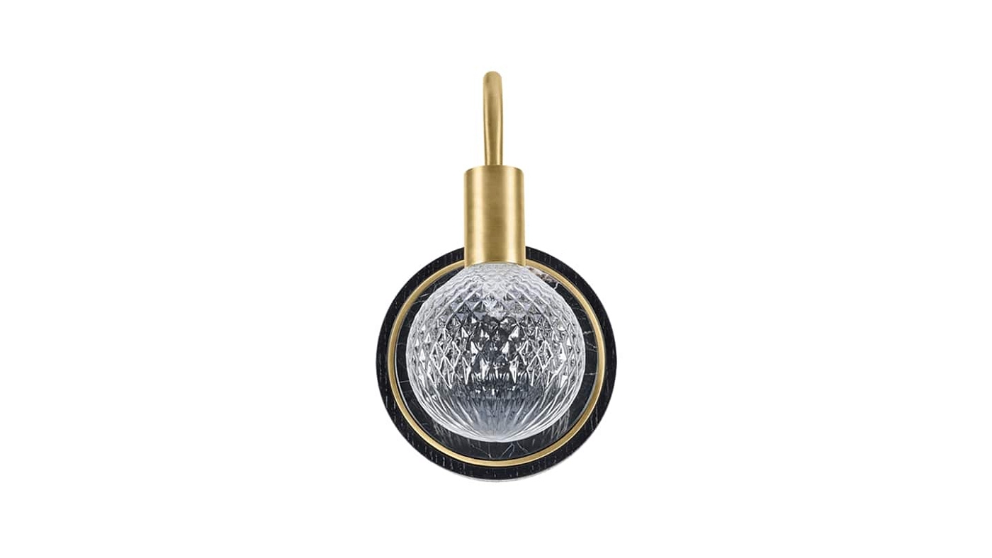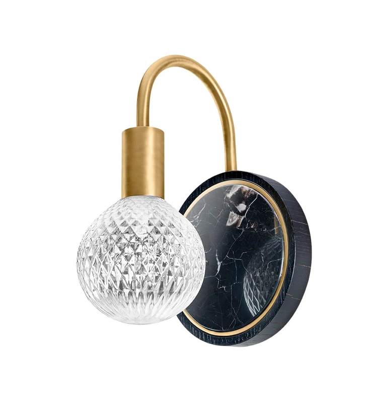 Мы никогда не устанем восхищаться настенным светильником TRIESTE, чья стеклянная колба прекрасно рассеивает свет и подвешена к изящной дуге из латуни, закрепленной в массивном камне.