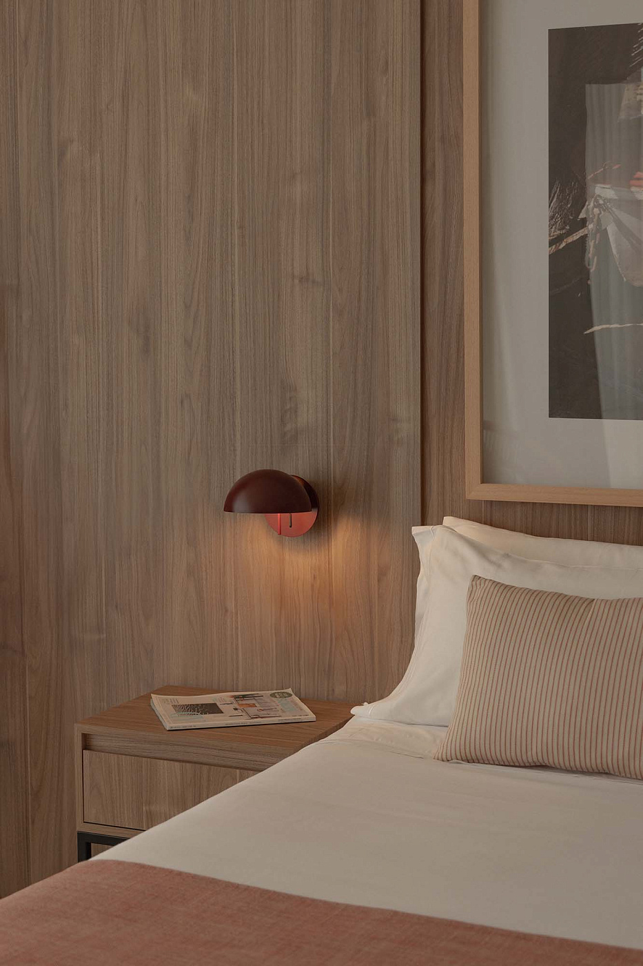Семейство МАТИЛЬДА, разработанное Лабораторией Фаро, может представлять собой геометрический минимализм, который позволяет ему вписаться в любое пространство. Его вращающаяся система абажуров и регулировки высоты обеспечивает широкий спектр световых эффектов, что делает его многофункциональной коллекцией. Настенный светильник гранатового цвета отличается чистотой и геометрическими формами.
