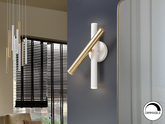 Настенный светодиодный светильник на 3 лампы с поворотным кронштейном. Изготовлен из блестящего золота и металла с матовой белой отделкой. Рассеиватель из опалового акрила. 15 Вт, 1350 лм, 3000 К. С диммером.