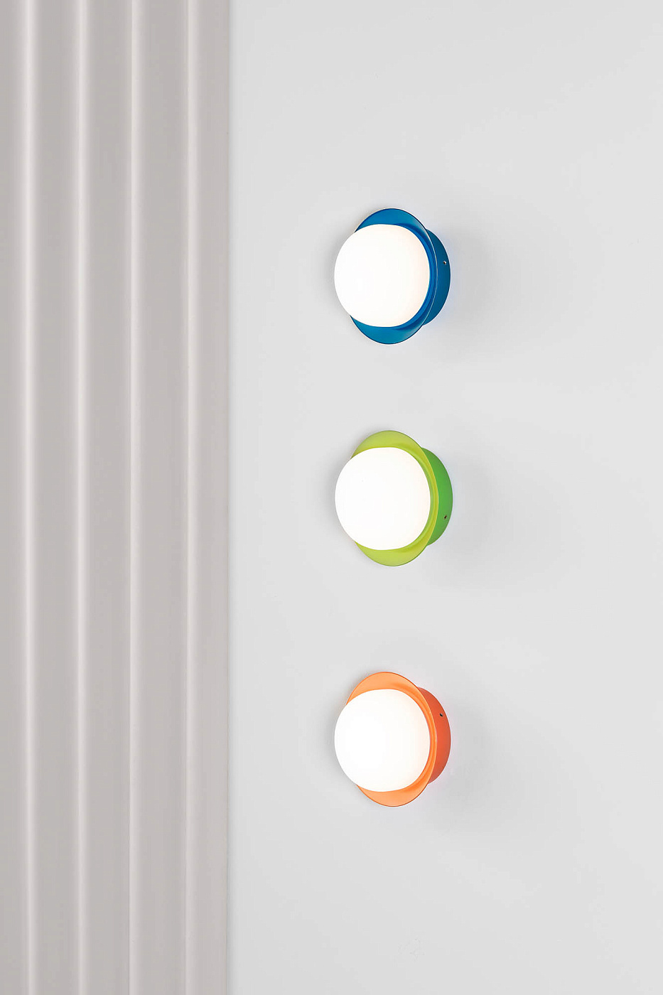 MAY — забавная коллекция настенных светильников, разработанная Faro Lab. Его структура имеет круглую форму, и его можно найти в пяти вариантах отделки. Его можно установить на стене или на потолке в качестве потолочного светильника, а также во многих помещениях, а также в ванной комнате благодаря степени защиты