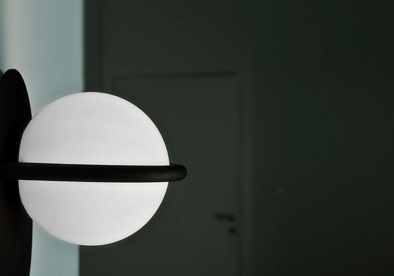 Декоративный настенный светильник, состоящий из опалового стеклянного шара и металлических деталей из сатинированной латуни или черного матового цвета. Доступен в двух версиях: окружающее освещение (1 л) или специальное окружающее освещение для чтения (2 л).
