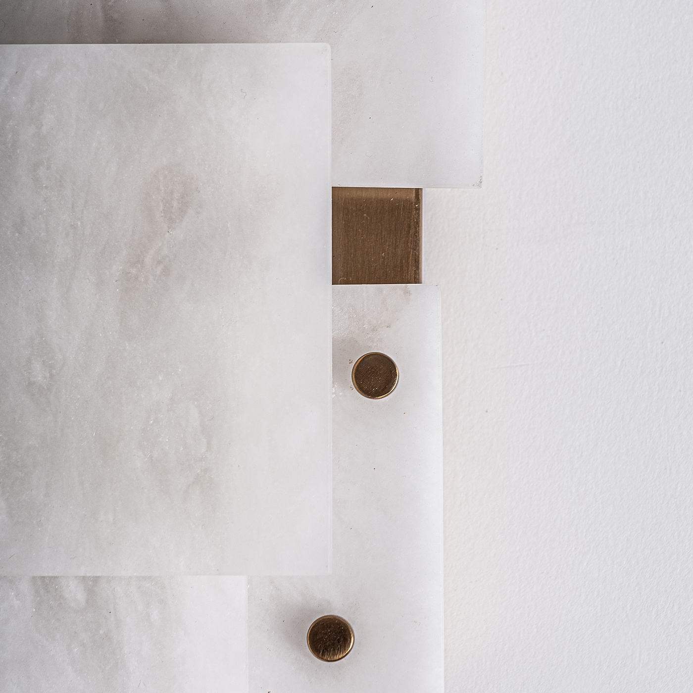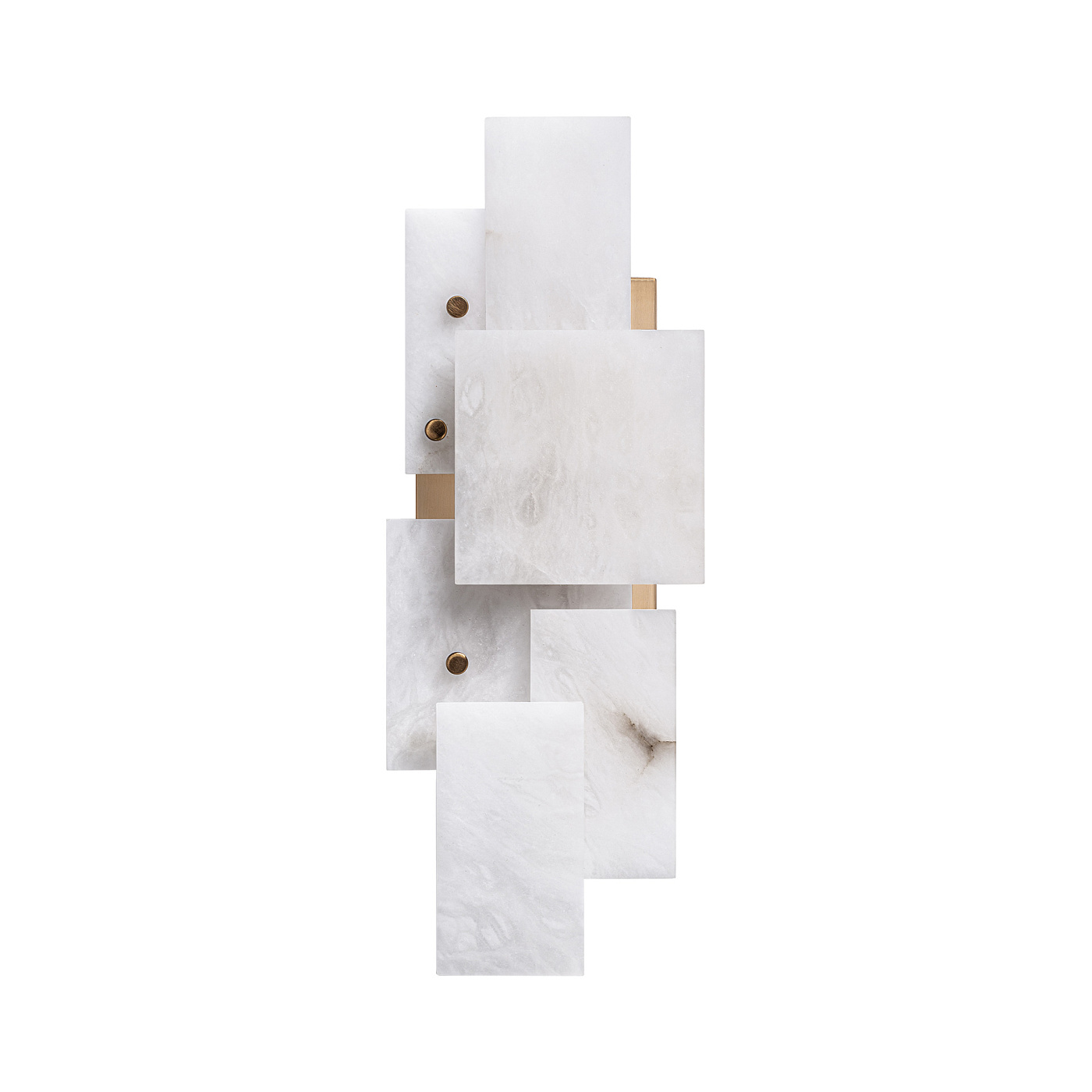 Настенный светильник «Чанья» в стиле ар-деко, изготовленный из белого алебастра в сочетании с золотистым железом. Разборный. Ширина: 42 см, Глубина: 16 см, Высота: 8 см