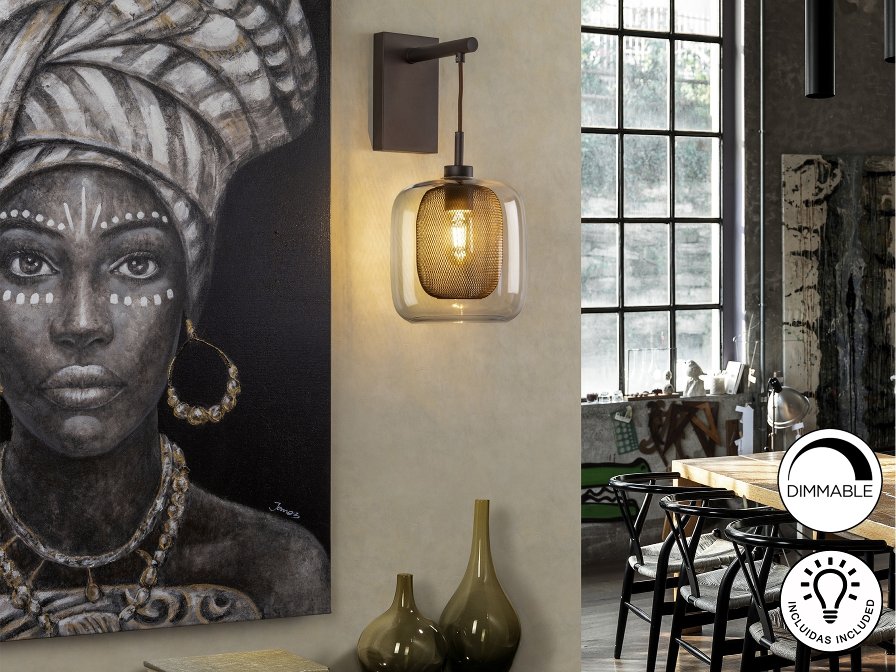 Настенный светильник из лакированного металла шоколадного цвета. Двойной стеклянный плафон, внутри металлической сетки и снаружи стекла. В комплект входит 1 светодиод E27 мощностью 8 Вт. DIMABLE.